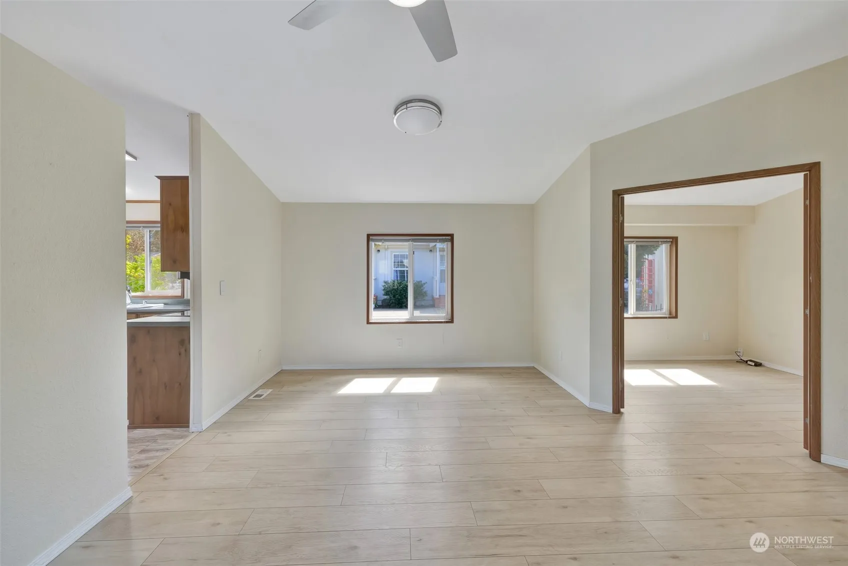 Great location in Parkwood. Located toward the back of the community on a greenbelt. Enjoy the beauty of the greenspace without having to maintain it. The home features 2 bedrooms 2 baths and a study/den. Laminate flooring throughout give the home a nice clean look. The clubhouse is a short distance away. Come make this your new home in Sequim. Space rent is $650/mo plus $19 for base water