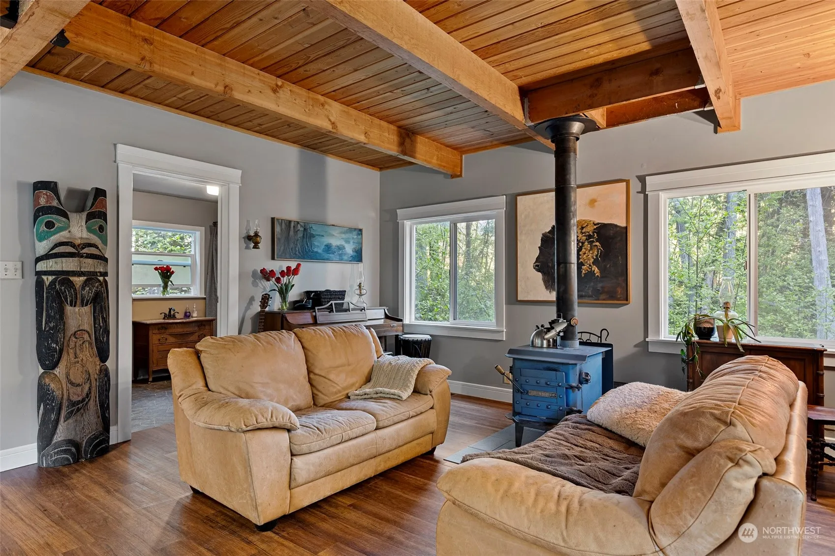 Nearly 4 acres of pristine, deed land in La Conner awaits you. Step into your private oasis enveloped by majestic trees. This 3-bed, 1-bath home is tucked away on a tranquil private road. Enjoy a spacious porch and a generous yard perfect for chickens, gardening, or hosting gatherings. On the front half of the property, discover an old cabin, RV hookups (w/ power and water), a garage, and several additional outbuildings scattered throughout. Just a short drive from the water and only 2.5 miles from downtown La Conner, known for its vibrant art scene, cute boutique shops, farm-to-table dining, and acclaimed marina—a gateway to the San Juan Islands. Convenient access to I-5 makes commuting to Seattle, Vancouver, or BC a breeze.