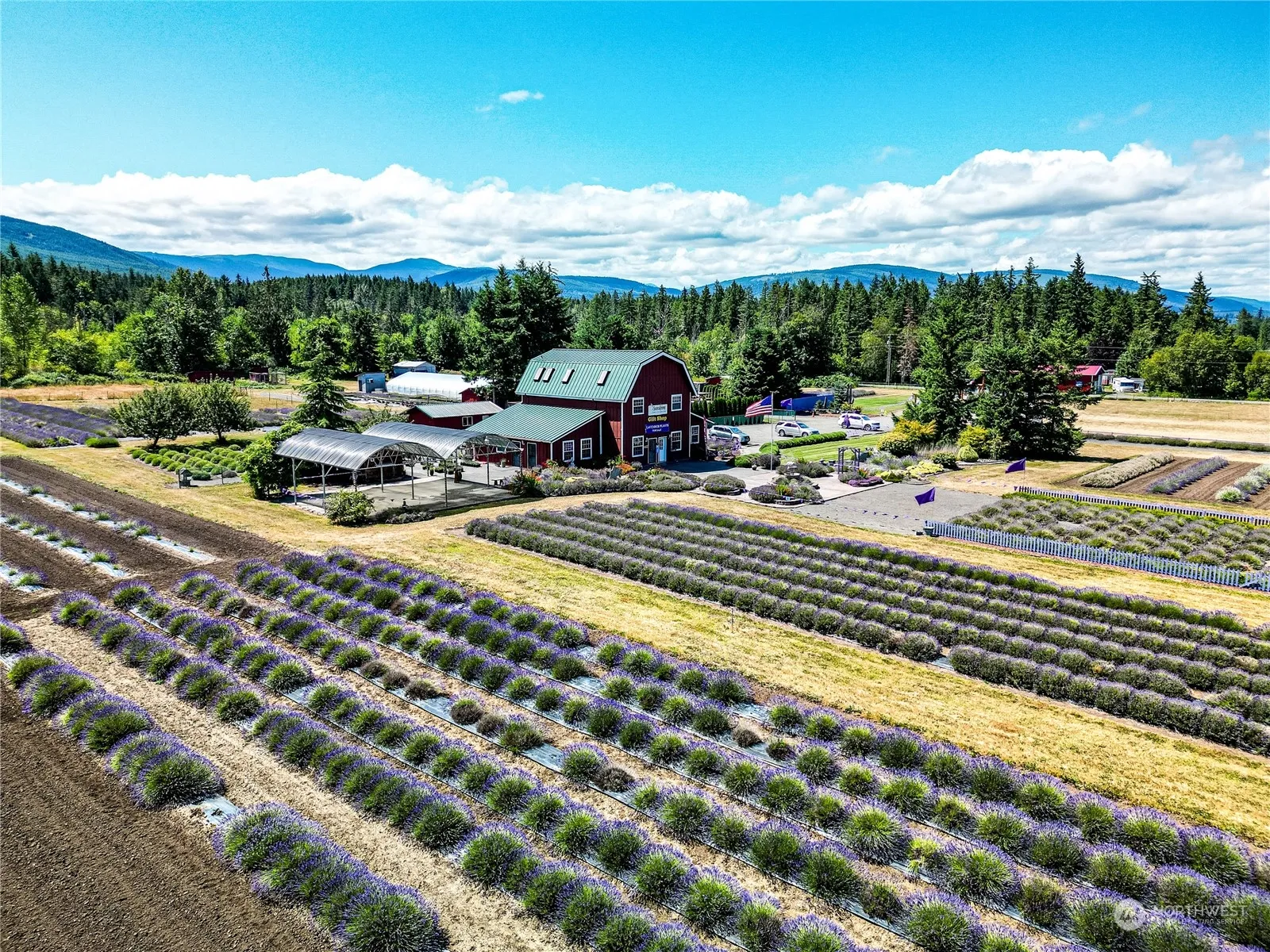 Location! This 8.79 Acre Lavender Farm is located right on a major Highway for Maximum Exposure! Beautiful Gift Shop w/Large Inventory of Lavender Products & room to add other products.Heated Floors on main level, Commercial Kitchen, Espresso Bar & Seating area inside & outside, Large Covered Patio Area & Cook Shed for Events.There is a 1000sf two bedroom, one bathroom unit above the Gift Shop & a Cabin w/additional living quarters both nicely upgraded. 3000 SF Greenhouse, Lawn Area for Special Venues, Large Drying Shed, Cleaning Shed, Garage, Large Workshop or Rec Room, Barn, Fenced Area for Farm Animals, Commercial Septic, Private Well. Plenty of Parking for Large Events, Live & Work at Home w/this First Class Farm & Business Opportunity!