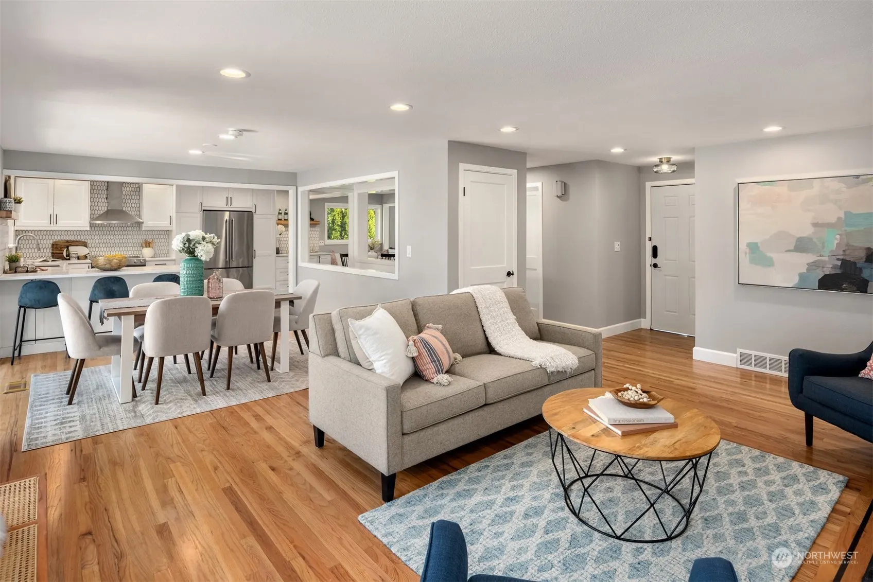 Nestled on a lushly landscaped lot, this Edmonds classic offers fresh updates for modern living. You’ll love the bright, open layout with hardwoods throughout. Gather alongside the cozy fireplace, host parties in the spacious dining area, whip up gourmet meals in the beautiful stainless/quartz kitchen or watch movies together in the new stepdown family room. Three bedrooms together on the main, including your generous owner’s suite with private access to the sunny deck. Discover extra flex space downstairs with a huge rec room & 4th bedroom. Outside, a level lawn & raised planting beds await your summer sports & veggie garden. This peaceful locale is just minutes away from parks, shops & dining. New paint, lighting & carpet + AC for summer!