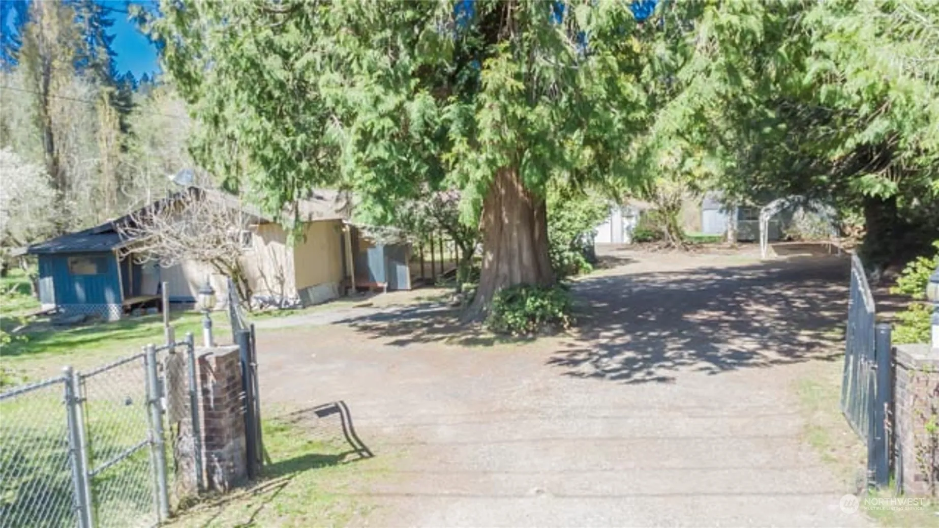 Instant equity opportunity! This gorgeous park-like 2.5 acres is awesome! Tons of potential to remodel the structures and get some instant equity. Main home features 2 bedrooms and a .75 bath (can remodel 2nd bathroom back in – approved for 3 bdrms). 1312 SF of open living space with vaulted ceiling, large kitchen space and light and bright rec-room. 1-car garage with large workspace, 3 separate storages building with tons of storage space including one on slab at back of property. So much potential. Please do not enter property without appointment. Estate sale sold As Is.