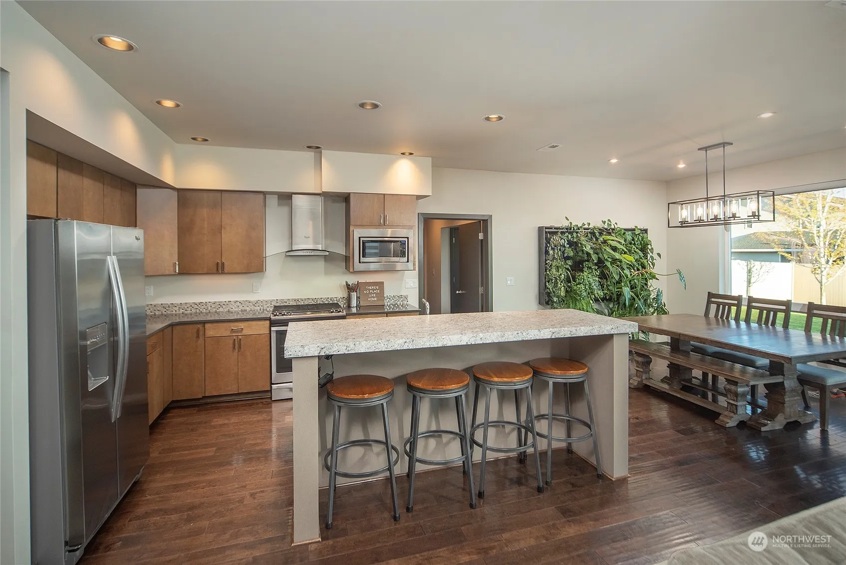 Welcome home to the fabulous Kestrel Point neighborhood! Clean and move in ready, this large two story features 4 bedrooms, 2.5 baths plus office/work room and bonus room. Stylish & efficient contemporary design with quality interior features, quartz countertops, custom soft close cabinetry, tile bath floors and showers, gas range and oven with hood. Centralized kitchen, living & dining areas with engineered hardwood floors throughout. Low maintenance stucco exterior, covered outdoor living space with gas fire table and vinyl fencing. Irrigated lawn in southern exposed back yard and drought resistant landscape design out front. Oversized, finished and painted 2 car garage with work space and extra storage. A great place to call home!