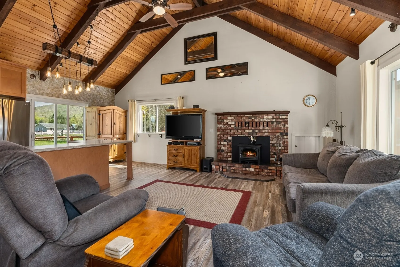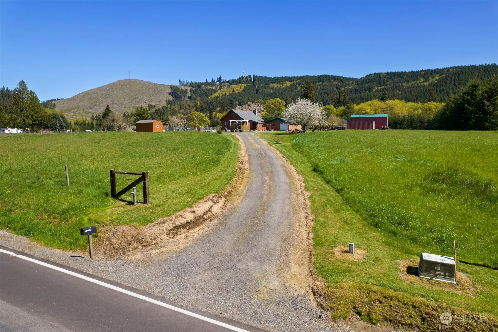 Welcome to your private oasis! This breathtaking cabin style home sits on 9.55 acres of mostly level lush land. Step inside to discover an updated interior, featuring new life-proof luxury vinyl plank flooring & ceilings adorned with exposed beams made from the property’s own lumber. The kitchen is showstopping with updated Corian countertops & a suite of modern appliances. Enjoy evenings by the LOPI wood-burning stove or relax in the custom Kohler shower in the updated bathroom. Outside, take note of the fruit trees including pear, apple, & cherry, detached garage, 28 X 24 Shop & 36 X 16 RV space, & multiple sheds for storage. Don’t miss the designated spot for the Jacuzzi. This home offers the perfect blend of tranquility & convenience.