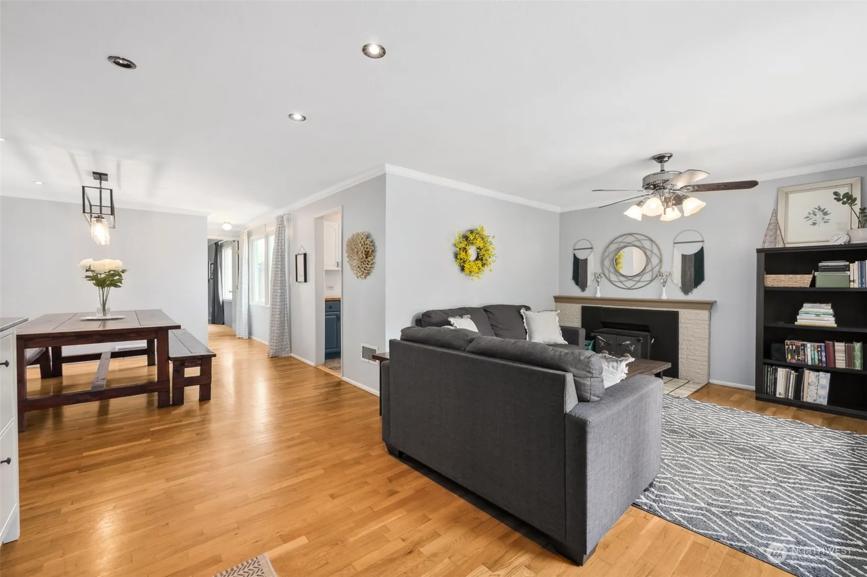 Charming rambler offers cozy retreat w/ delightful features throughout. Step inside, you’re greeted by hardwood floors & tile in the kitchen. Dining area provides a perfect setting for gatherings and everyday meals, while adjacent eat-in space off kitchen for added convenience. 4 bedrooms or flexibility to create 3 bedrooms w/ family room, home adapts to your lifestyle. Main bedroom has ample space & fireplace, serves as a sanctuary for relaxation. Remodeled full bathroom and an additional ½ bath. Fully fenced yard, plenty of space for outdoor activities & storage shed. On corner lot, property offers privacy & versatility. Located w/ easy access to Ft. Steilacoom Park for outdoor recreation, nearby shopping amenities for everyday needs.