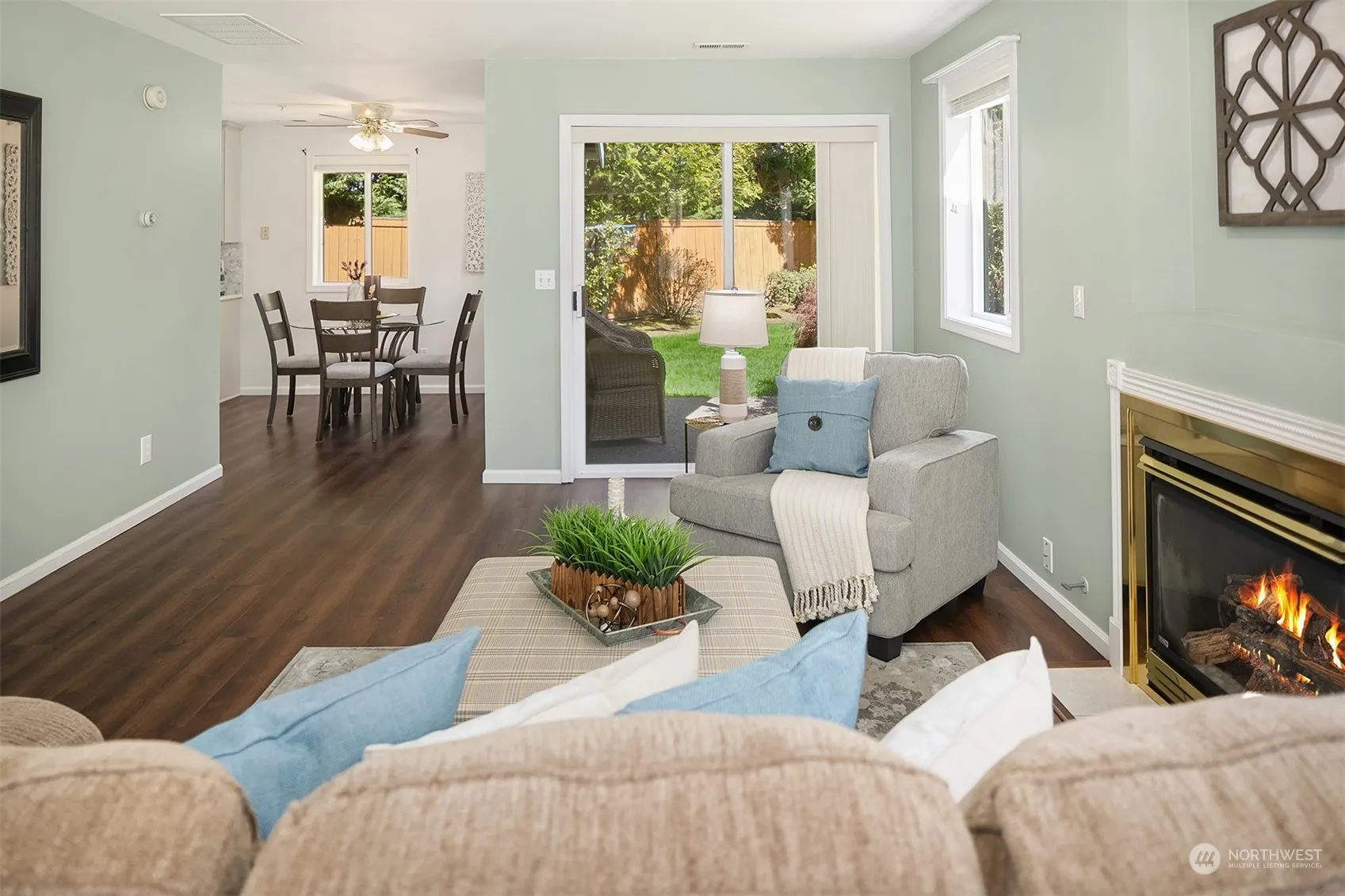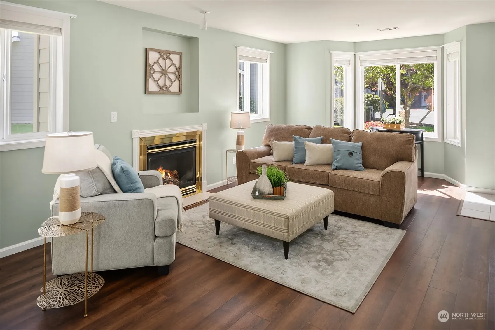 Extremely rare & highly desirable end unit in coveted Parkside Townhomes. This 2 bedroom, 2.5 bath unit opens to community green space, feels like your own little oasis. The kitchen was completely remodeled in 2018 & features quartz countertops & designer tile backsplash. The primary bathroom remodeled in 2022. Wide planked LVP floors throughout. Nat’l gas fireplace. This unit is one of the few models that features an upstairs bonus room, could be a WFH space, play room, exercise area, or…? Attached 1 car garage & additional parking in front of the garage. Keyless entry to garage. Roof new in 2023. Walkability score off the charts, minutes to downtown, coffee, wineries, trails & parks. 5 mins to I-90. Pre-inspected. No special assessment.