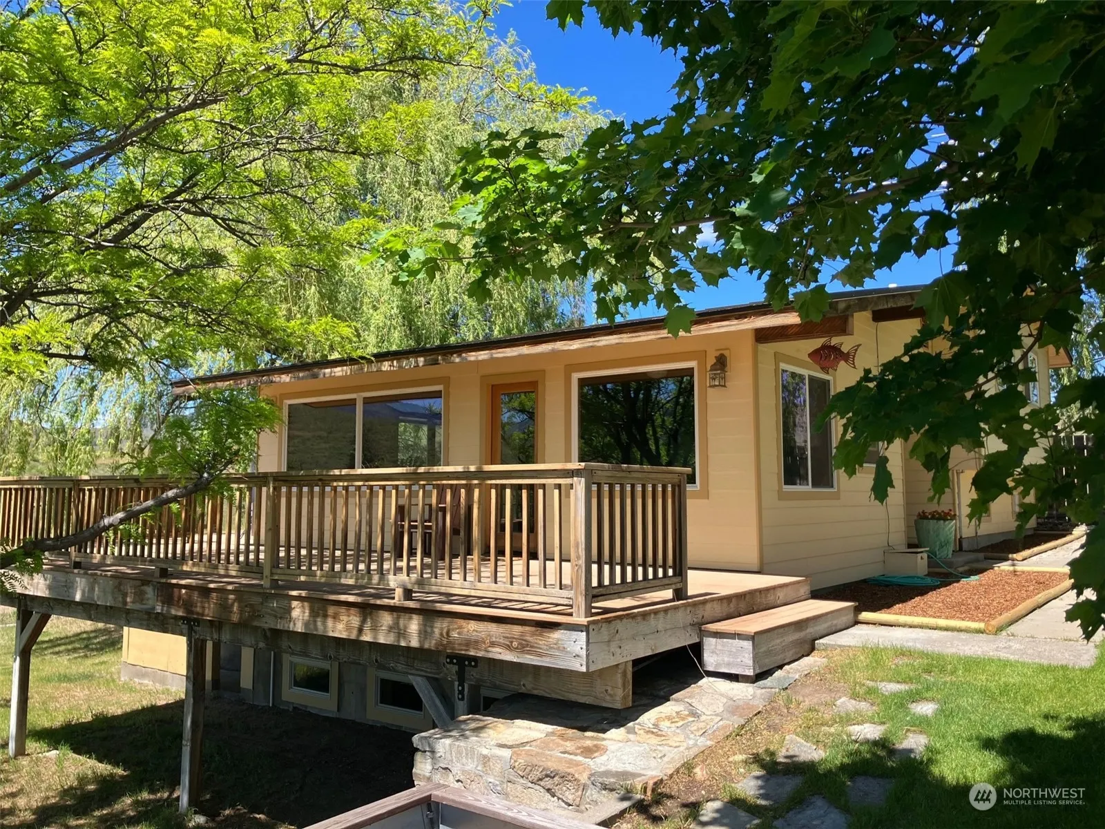 Motivated Seller! Bring your offers! Private, tranquil oasis in the popular Rendezvous area, yet only one mile from Winthrop. Hiking, biking and skiing opportunities just up the road. Remodeled 4 bedroom, 2 bath home has big windows that look out into a park-like, fully fenced yard with in-ground irrigation and towering willow trees and lilacs–a perfect setting for gatherings with friends, family and pets. Nice deck with Patterson mountain views for morning coffee and BBQ’s. A garden area with fruit trees welcomes the aspiring gardener. The entire property is fenced and horse friendly. The house has been almost completely remodeled leaving more time for you to enjoy this home, property and everything the Methow Valley offers!