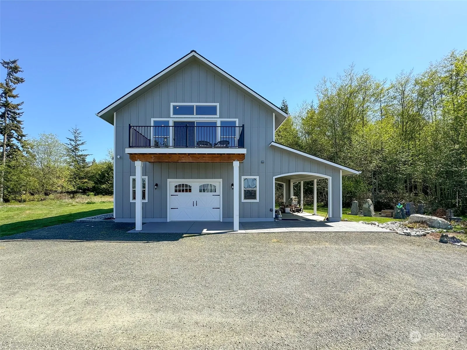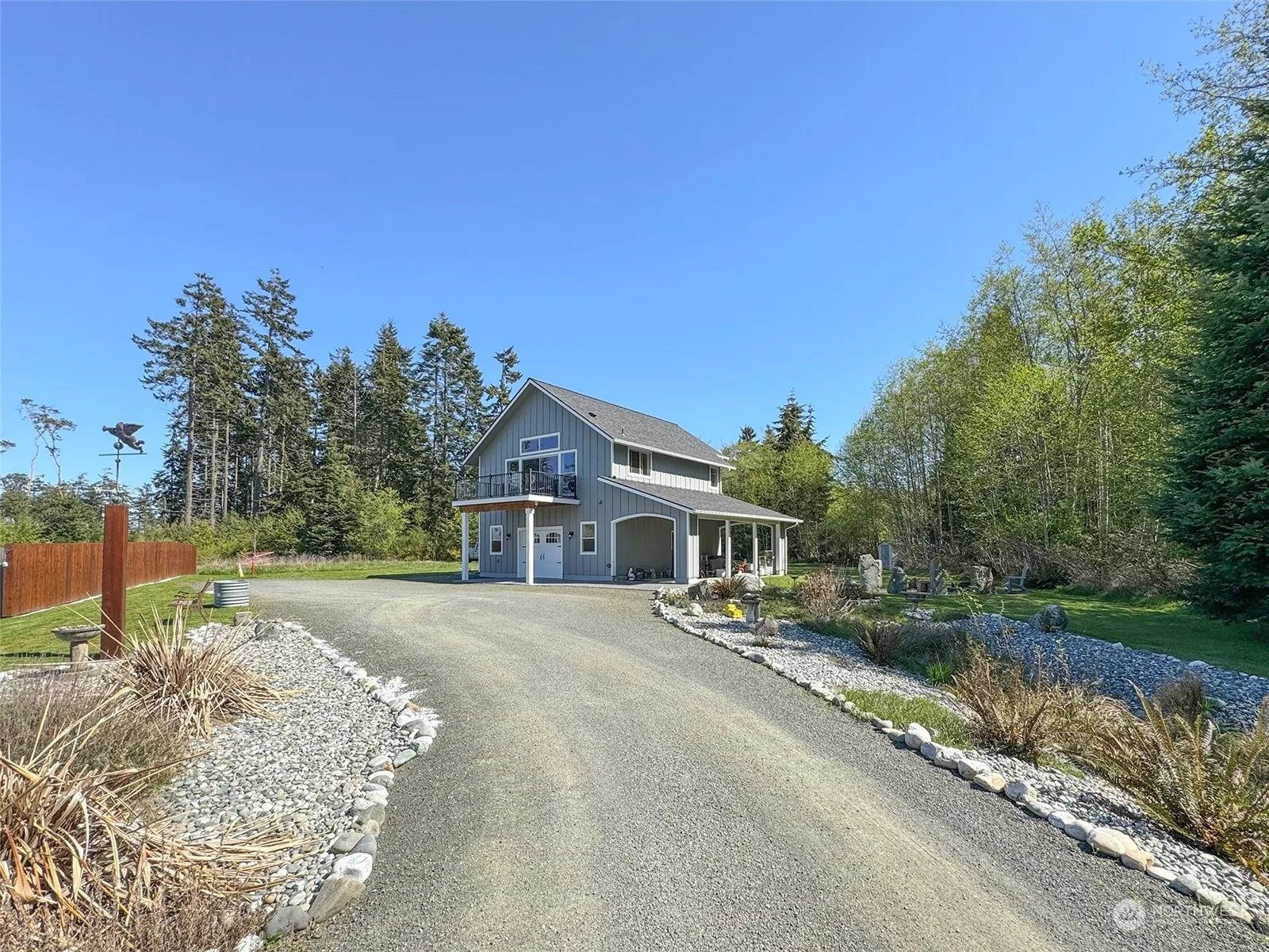 Watch the ships pass by from the balcony deck of this custom built, water view home. Enjoy beautiful sunsets and the city lights across the Strait in British Columbia. On the upper level, the kitchen and living room have a vaulted ceiling and large picture windows to let in the light and take in the view. The bedroom has 2 closets, and the bath has a walk-in tiled shower with river rock floor and skylight. The lower level has a half bath and laundry room in the 788 Sq Ft rec room with roll up door for entertaining. Plenty of room to add an additional bedroom & closet. The spacious yard has a fire pit with stone surround, and a garden shed. Parking in the carport or on site. Paved and gated driveway.