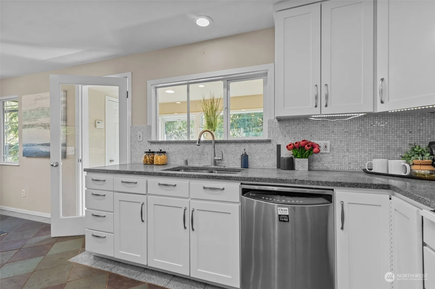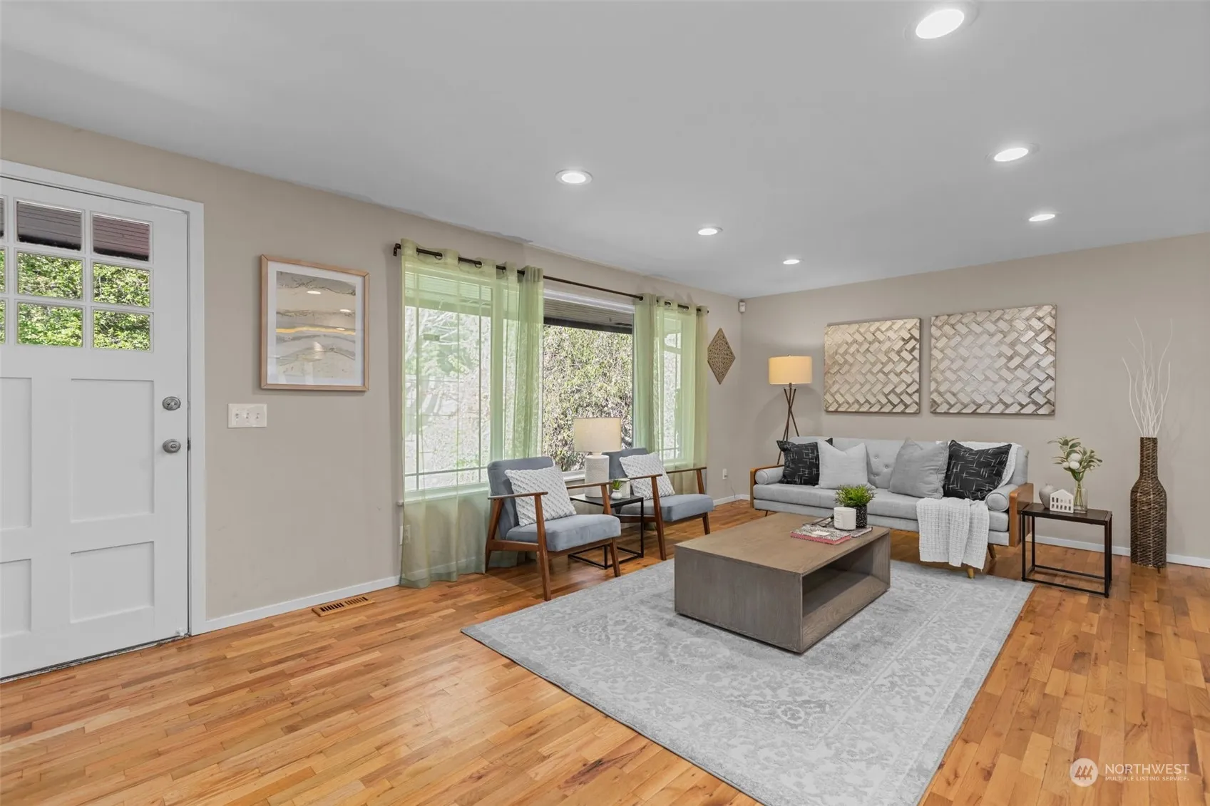 This beautiful, 1.1+ acre secluded, spacious, and refreshed mid century Issaquah home is ready for you to call it home! Bordering a creek at the back of the property and in the highly rated Issaquah school district, including a huge yard with room for gardening and playing. 2 bedrooms upstairs, 1 bedroom and primary suite (staged as family room) downstairs. Each floor has a full bath! Newer chefs kitchen with Viking stove, updated bathrooms, new well head, and plumbing to the septic. Light, bright, airy, and private. 2 car detached garage with room for shop space and hobbies, too! The yard is phenomenal with RV parking space, a concrete pad for your chicken coop, and partially fenced for your pets.