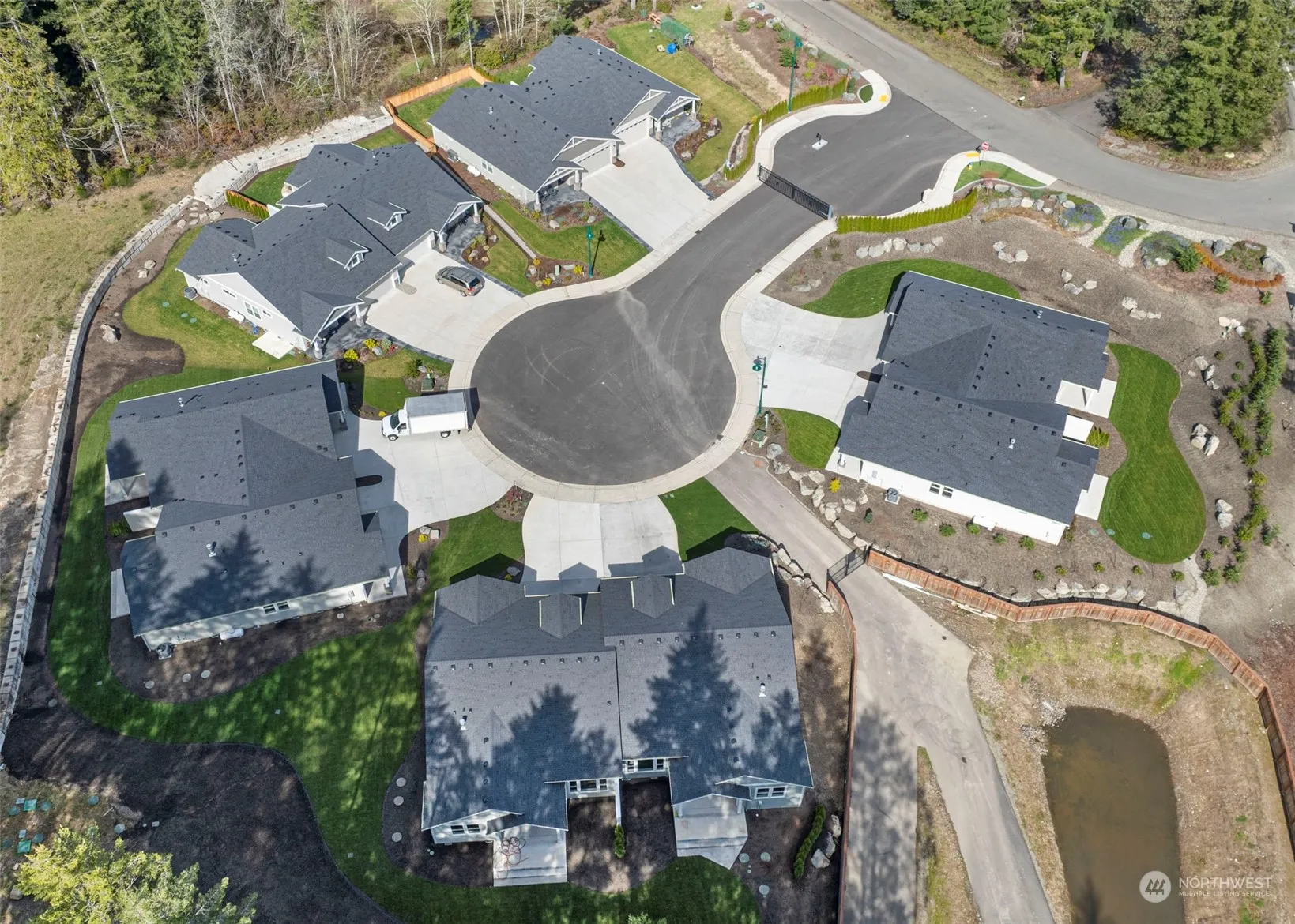 55+ gated new community-Westbury Gig Harbor. 10 zero-lot line homes by Hendrickson CC, selling $585-620,000. Final 6 move-in ready. Streetlights, accessible thru out, den,HVAC, hardwood. Each home singularly decorated. Dream kitchen, soft-close cabs, designer quartz, Bosch dual-fuel range & DW, MW drawer. Stone/shiplap surround FP & built-ins in vaulted greatroom. Primary bdrm includes barn door, 2 closets, heated bath floor, lighted mirrors w/unique glass door for zero-entry shower w/Grohe rain head, grab bars. Expanded patio & BBQ hookup. Insulated finished gar w/18×8’ door, genset wired. DIRECTION-Phone apps MAY NOT WORK–Hiway 16 to Hiway 302, to Elgin Clifton traffic lite, straight on Key Pen Hiway 1mi to 138th Av. 12 min to Costco