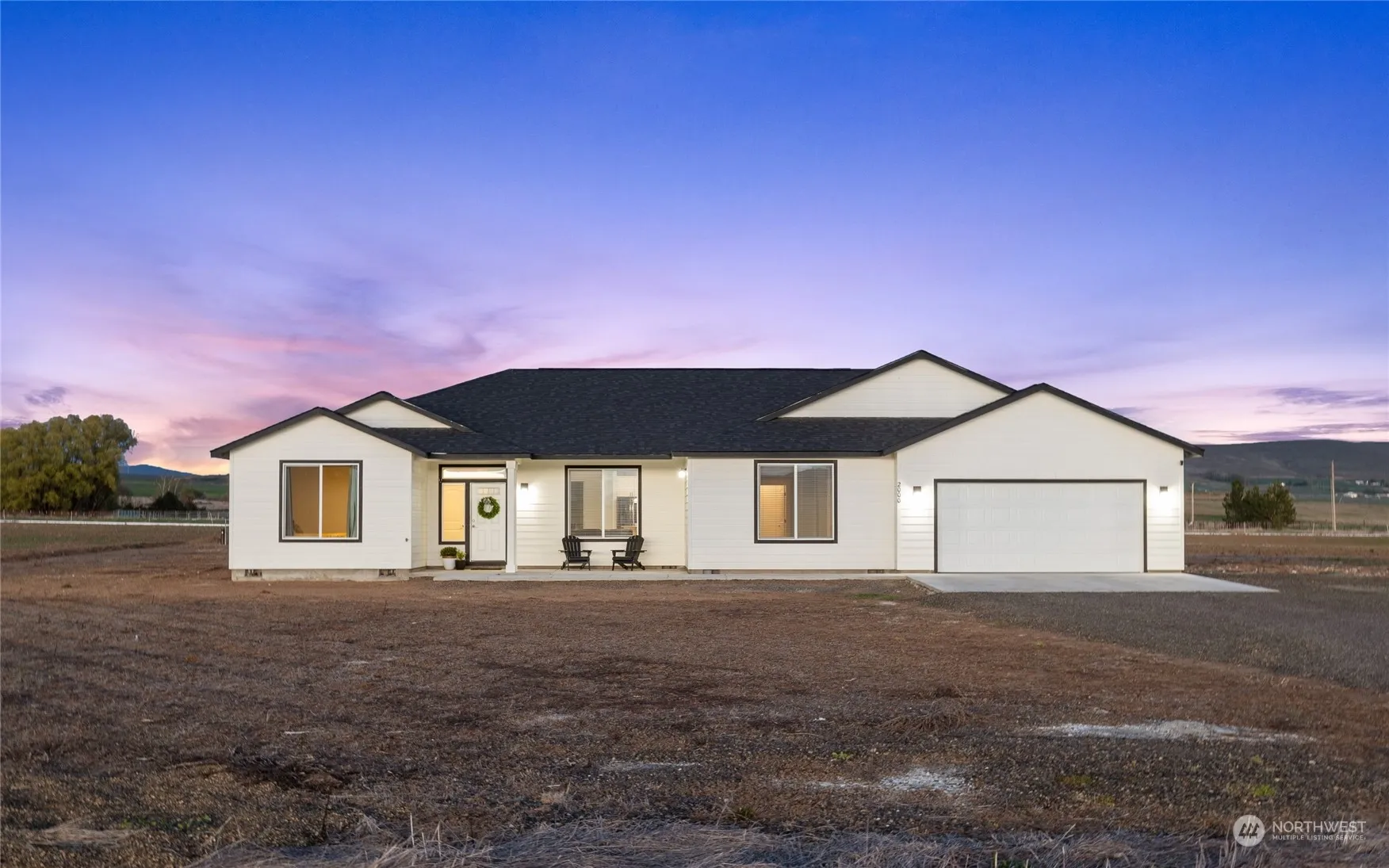 Sweeping valley views & quiet country living awaits you at this 9.17 acre property! Built in 2021 this expansive 2,564 SqFt open concept rambler features 3 bedrooms, 2 bathrooms + office & large bonus/flex room. Relax in the sun filled living room or enjoy making a new recipe in the modern and spacious kitchen with quartz countertops, stainless steel appliances, large island, and convenient butler pantry. Well appointed primary bedroom w/en suite featuring a soaking tub, custom tiled shower, dual vanities & separate walk-in closet. Steal away a peaceful evening while soaking up the beautiful 360 degree views on the front or back patio, or enjoy an afternoon putting your own touch on the vast open & irrigated pastureland. Welcome home!