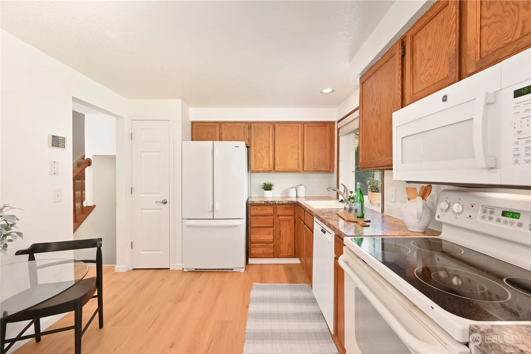 The home you’ve been waiting for! Lovely updated Green Acres home sited on a beautifully landscaped sunny corner lot. Welcoming interiors & circular floor-plan create an elegant yet comfortable setting for everyday living & formal entertaining alike. Main floor features chef’s kitchen w/eating nook, + formal living & dining rooms punctuated w/new wood floors & inviting fireplace. Upstairs you’ll find a primary suite with 3/4 bath + two add’l spacious bedrooms & freshly remodeled full bath. Lower level offers versatile rec-room for play, media, office or simply hanging out, plus a lg utility room, half bath & access to oversized 2 car garage. Private backyard sanctuary w/patio & lots of room to play & garden. Award winning Lk WA Schools.