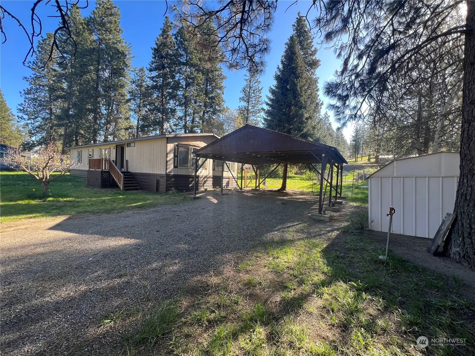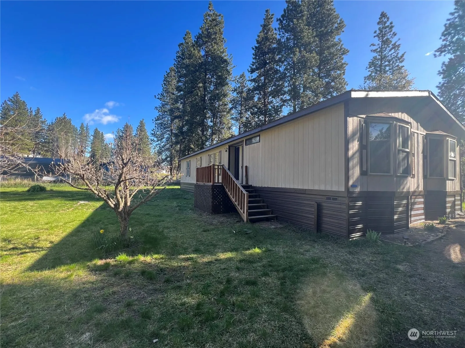TONASKET – Crumbacher – Mountain Views – 3 bedroom/2 bath 1680sqft manufactured home on just over a half-acre. Perfectly maintained home with vaulted ceilings, ceiling fans, two bedrooms & one full bathroom on one side of the home, primary with ensuite on the opposite side, laundry room with backyard access to deck, separate living room, dining room, & great room. Kitchen w/wonderful cabinet space, breakfast bar and built in buffet cabinet – ALL APPLIANCES STAY. Primary bedroom with soaking tub, two vanities, and shower. Brand new exterior skirting pant & deck. Matured backyard with storage shed, grapes, and fenced separated garden area. Double pane windows. Septic. Irrigation. Pinecrest Water Association. $205,000 MLS-2226662/H-3234