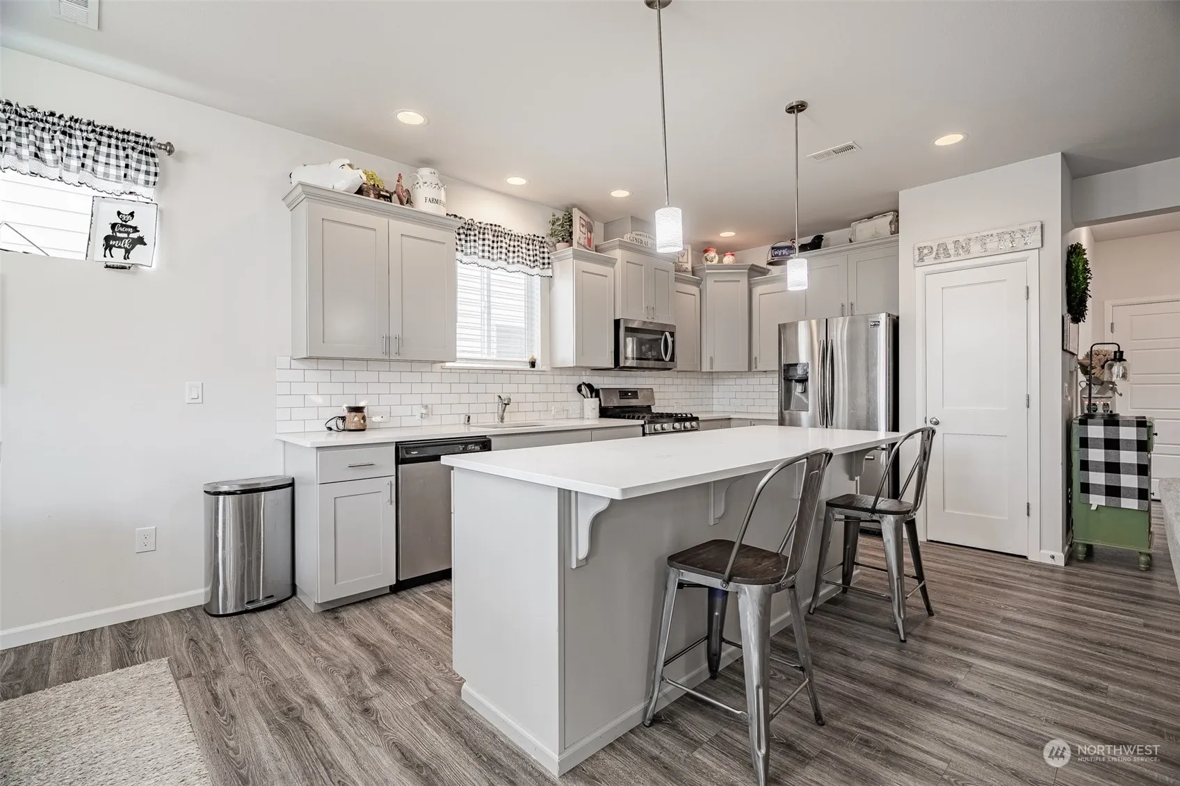 Welcome to an Amazing Yelm Community, Tahoma Terra! 2018 Built Home at 2442 Sq. Ft. with 4+ Bedroom 2.5 Bath that offers ultimate flexibility with a Bonus Rm & an Office to utilize as the New Owner Sees Fit. Upon entering you can’t help but notice the High entry ceilings & Open Concept Living Area that leads to a Large Kitchen which features a Beautiful Island, Quartz Countertops, Decorative Tile Backsplash with A Gas Range. Enjoy a Spacious Great Rm with a Gas Fireplace & Built in Cabinets. Upstairs you will find the Primary Bedroom with 5-piece Bath, Walk-in Closet, 3 additional bedrooms & A Large Bonus Room! No Need to Ever Get Hot & Bothered During Summer with A/C to Cool Things Off! Access to JBLM, Shopping, Dining, Parks & More!!