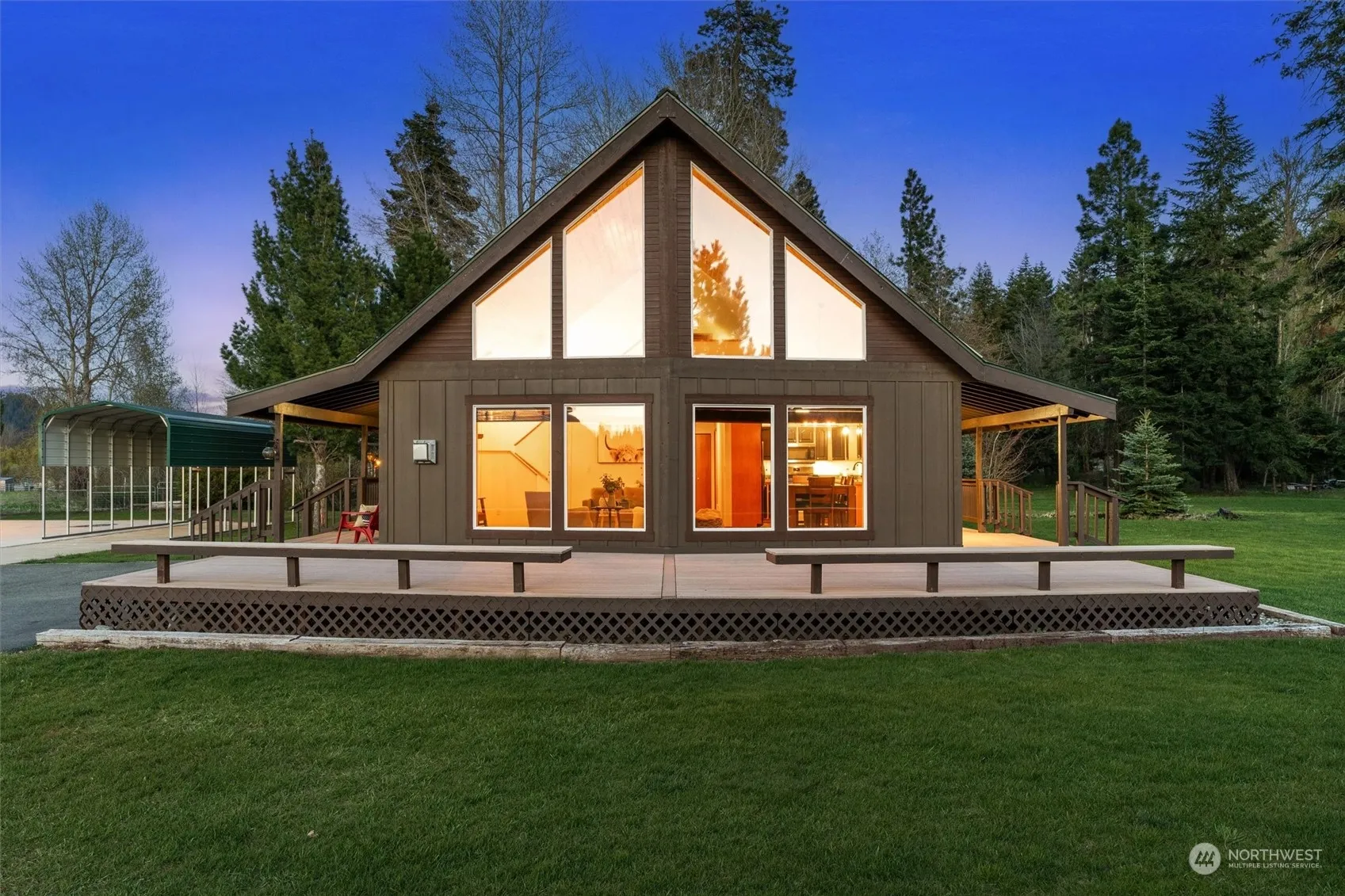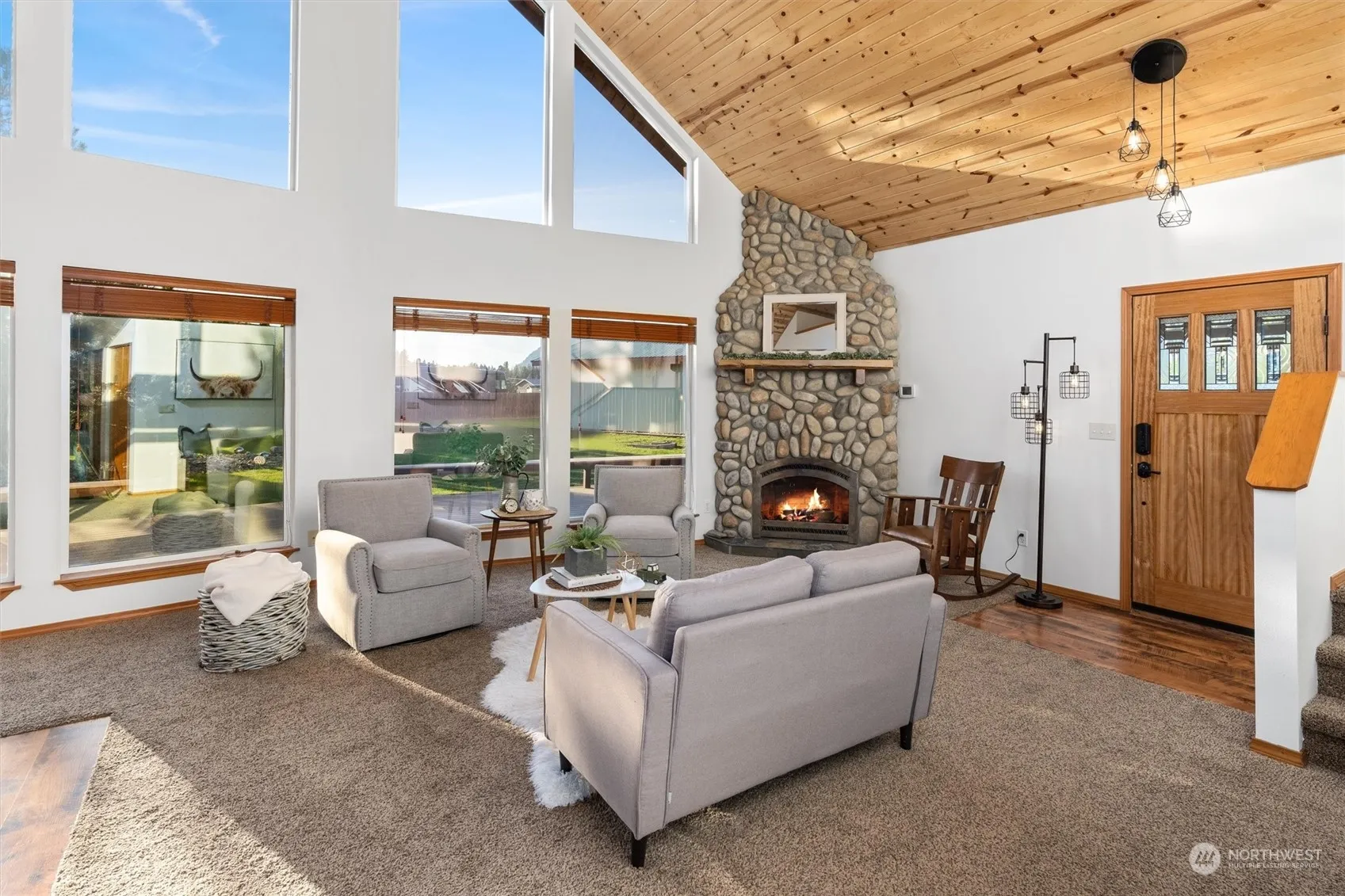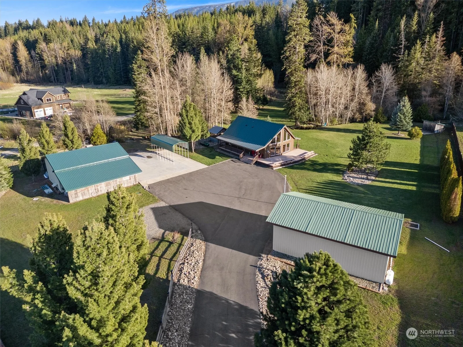 Down a Private Drive behind the Gates sits a Meticulous Estate on 3 Acres w/2 Detached Shops, Private Pond & Whimsical Creek! Large Entertainment Deck sets the stage & welcomes you. Upon entry note; Pine T&G Vaulted Ceilings, Stone Fireplace & Vast Windows bringing the Outside In. Living Room opens to Large Dining Area & Kitchen. Main Floor Primary & Ensuite down the hall along w/Add’l Bedroom, Full Bath & Laundry. Upstairs is a sizable 3rd Bedrm/Loft. Outside find 2 Detached 24’X36’ SHOPS, 2 Lean-to’s, RV Carport & Clean Out, Car Lift, Shed, Gazebo, Horseshoe Pit & More! Updates include Metal Roof, Hardi-Plank & Cedar Siding, Kitchen Appliances, Ductless Mini-Splits, Interior Paint & Light Fixtures. Perfect for Primary Res, 2nd Home or STR