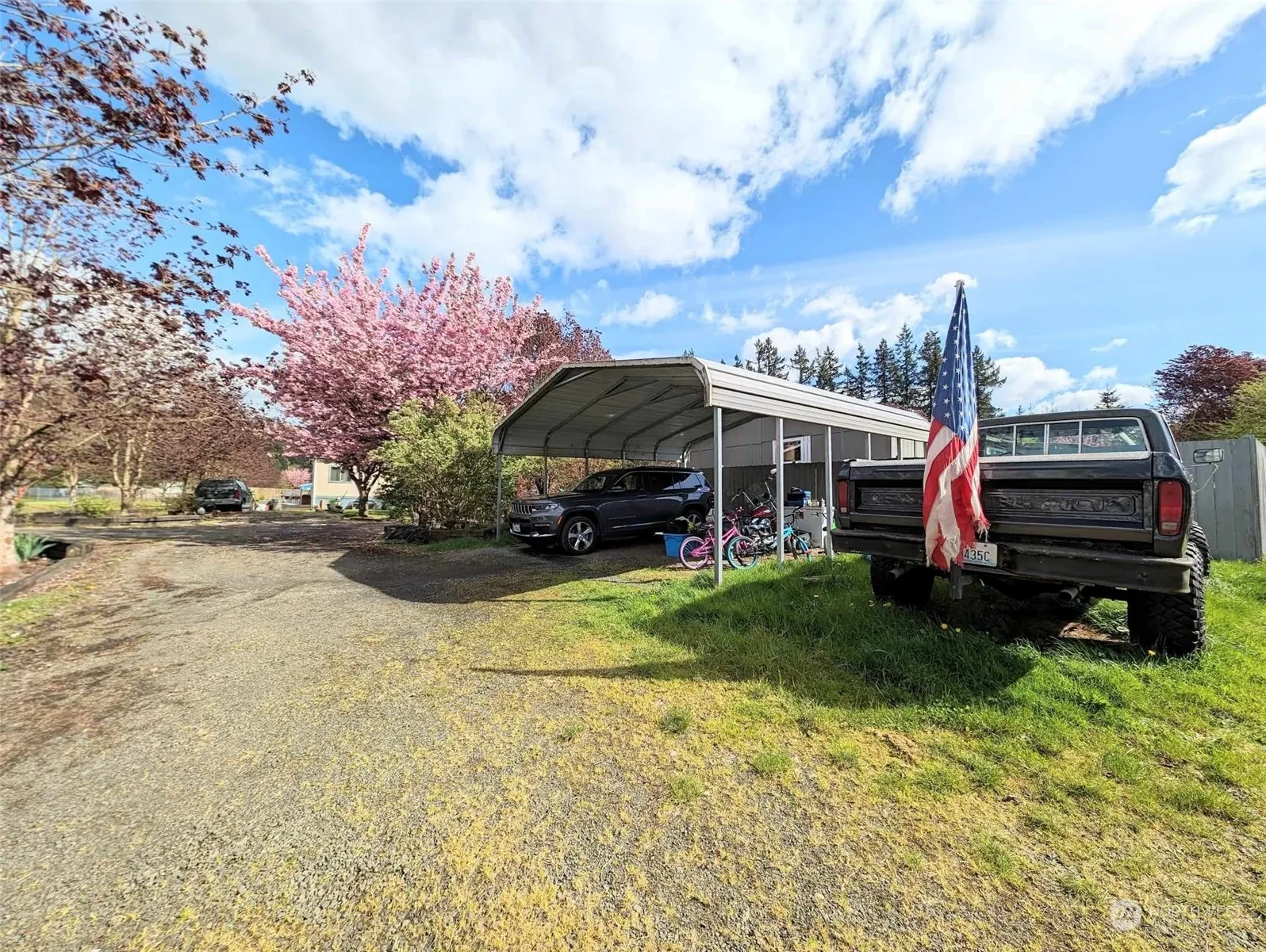 Come and see this 1080 sq foot manufactured home nestled in Greenwood Mobile Home Park (for all ages). With easy access to the freeway heading towards Grand Mound or Olympia. This home has plenty of storage inside and outside. Outside sits a 2 stall carport on one side of the home, then another single stall carport and 2 storage sheds on the other side perfect for storing cars or projects. The fully fenced back yard gives plenty of privacy for outside activities. While inside you’ll find the plenty of storage throughout! On one side of the home sits the primary bedroom with a walk in closet and bathroom. On the other end 2 larger rooms fully bathroom and large linen closet!