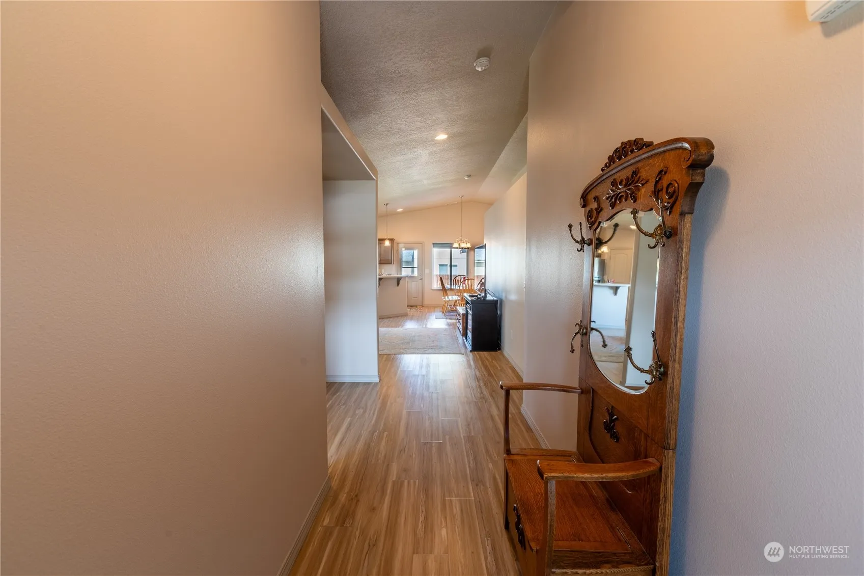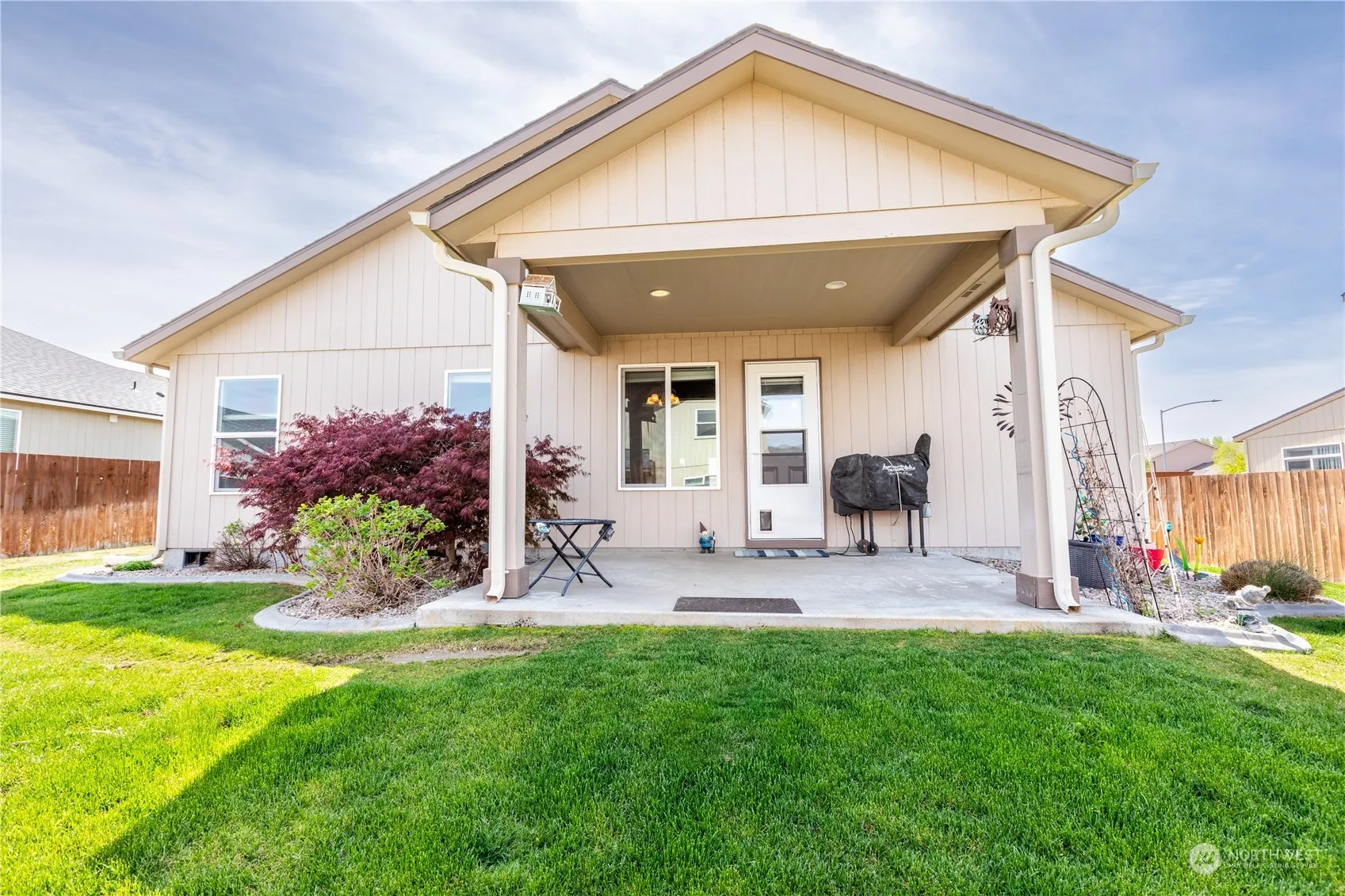 Wonderful well cared for 3 bedroom 2 bath open concept home has a large kitchen with island with bar seating and a pantry and vaulted ceilings. Updated flooring and freshly painted interior (April 2024). Yard is fully fenced with a sprinkler system and attached garage, covered back patio, low maintenance landscape. All the appliances stay, ready to move in!