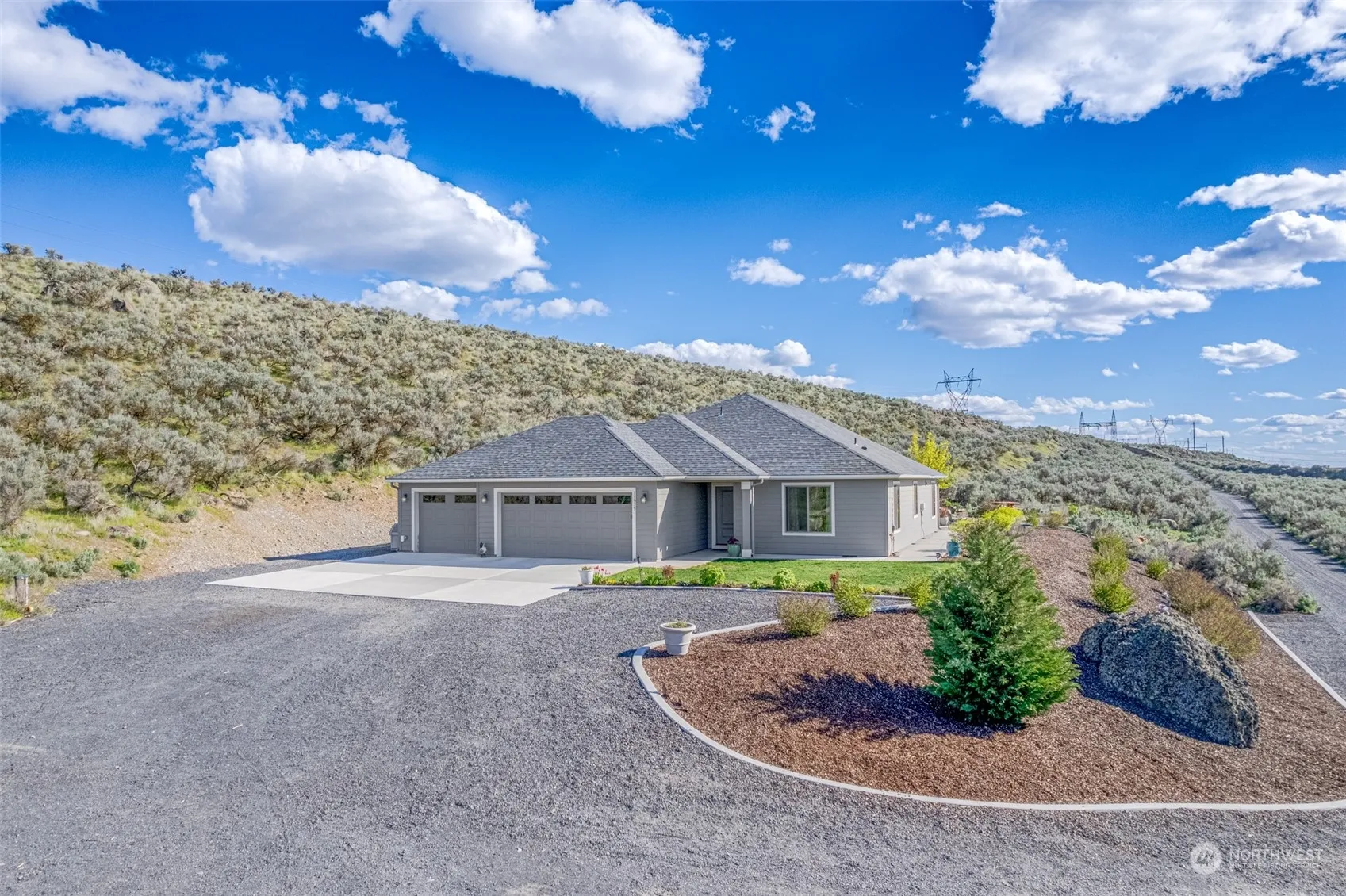 VIEWS, LOCATION & SUNSETS! It’s all about outdoor life with this property. This beautiful newer 3 bedroom 2 bath home is nestled above Rocky Ford Creek with expansive and unobstructed views and access to outdoor life. Low maintenance landscaping, lots of parking, garage has a longer bay for parking and storage. Open concept with vaulted ceilings, large kitchen island with bar seating and slider to the oversized covered pergola patio off the dining area. Primary bedroom bathroom combo has walk in shower, separate bathtub, walk-in closet and double vanity. This secluded location only a short jaunt to Moses Lake or Ephrata is hard to come by!