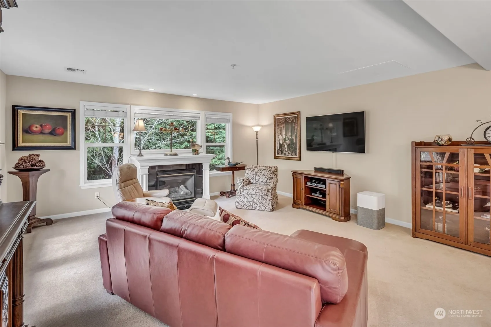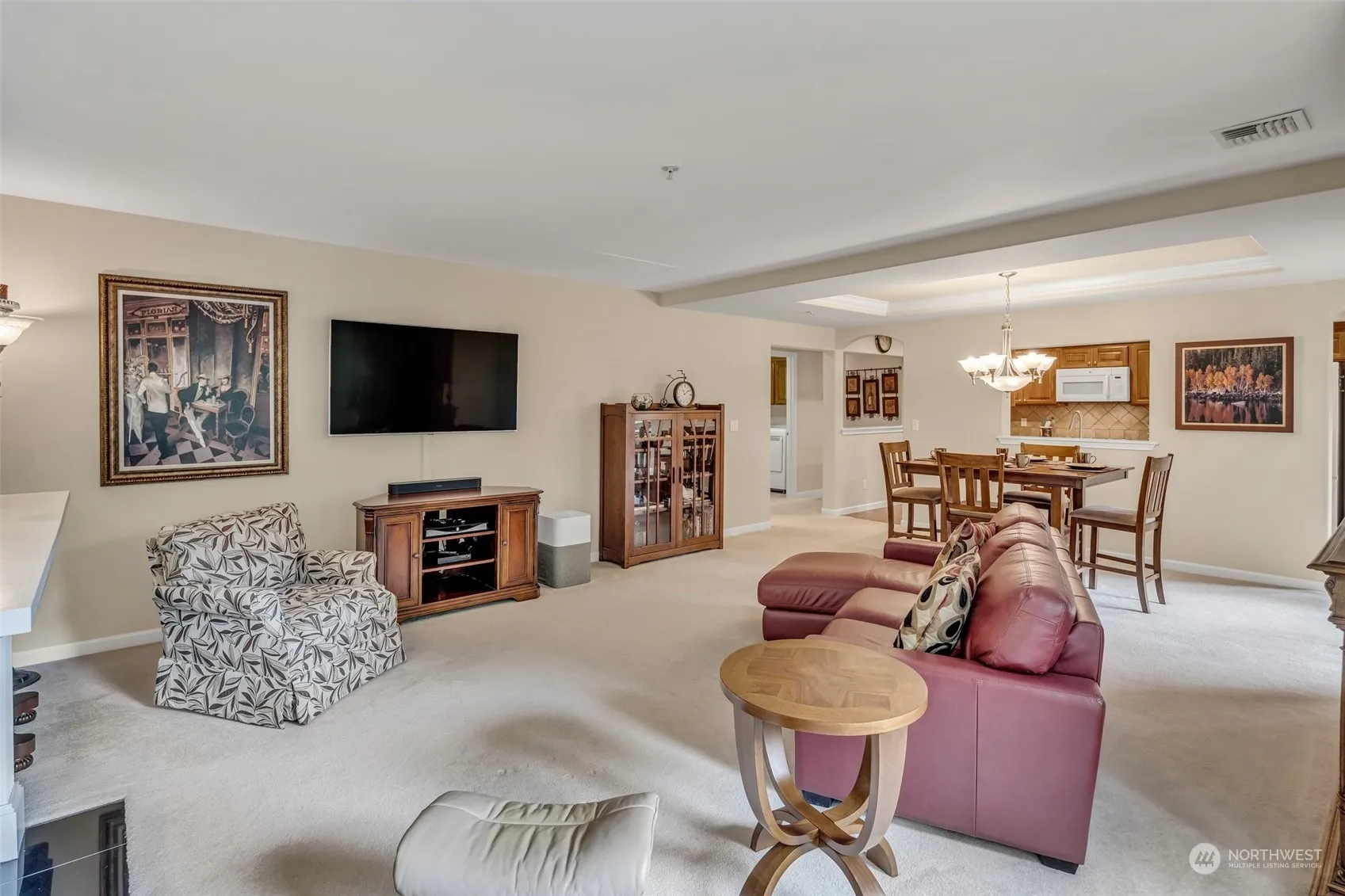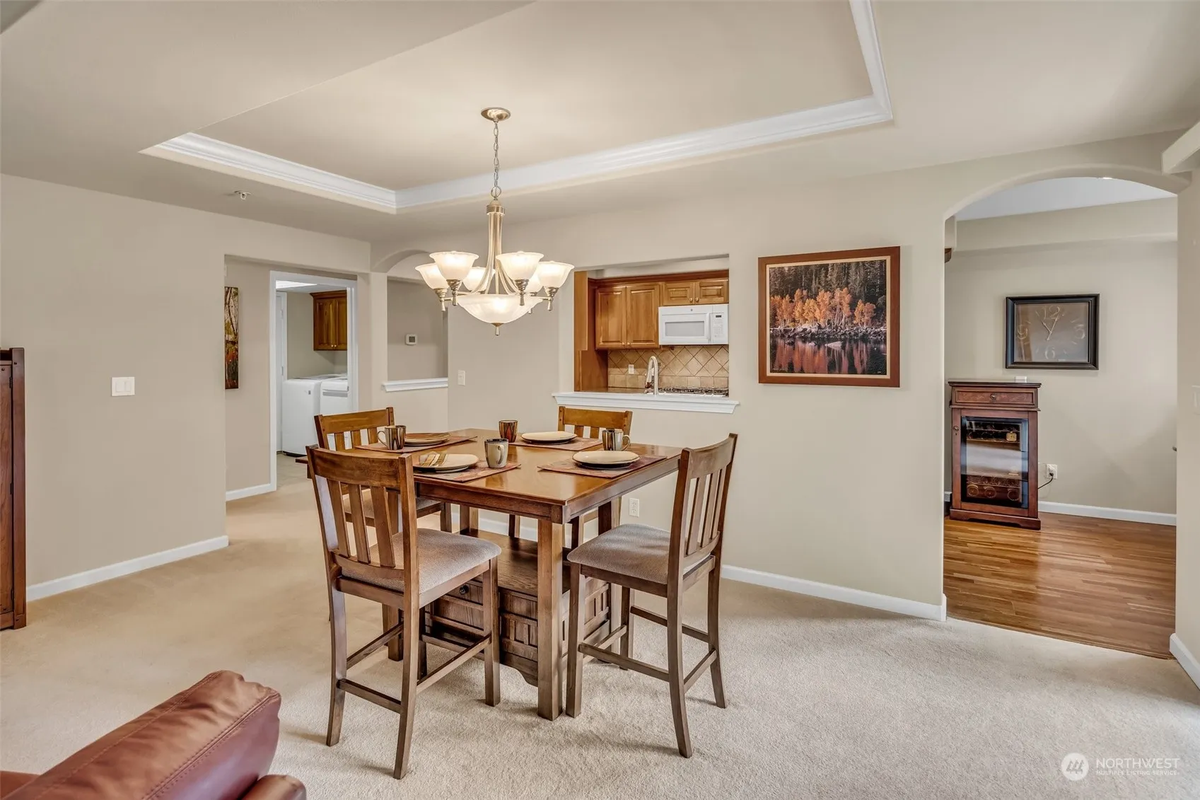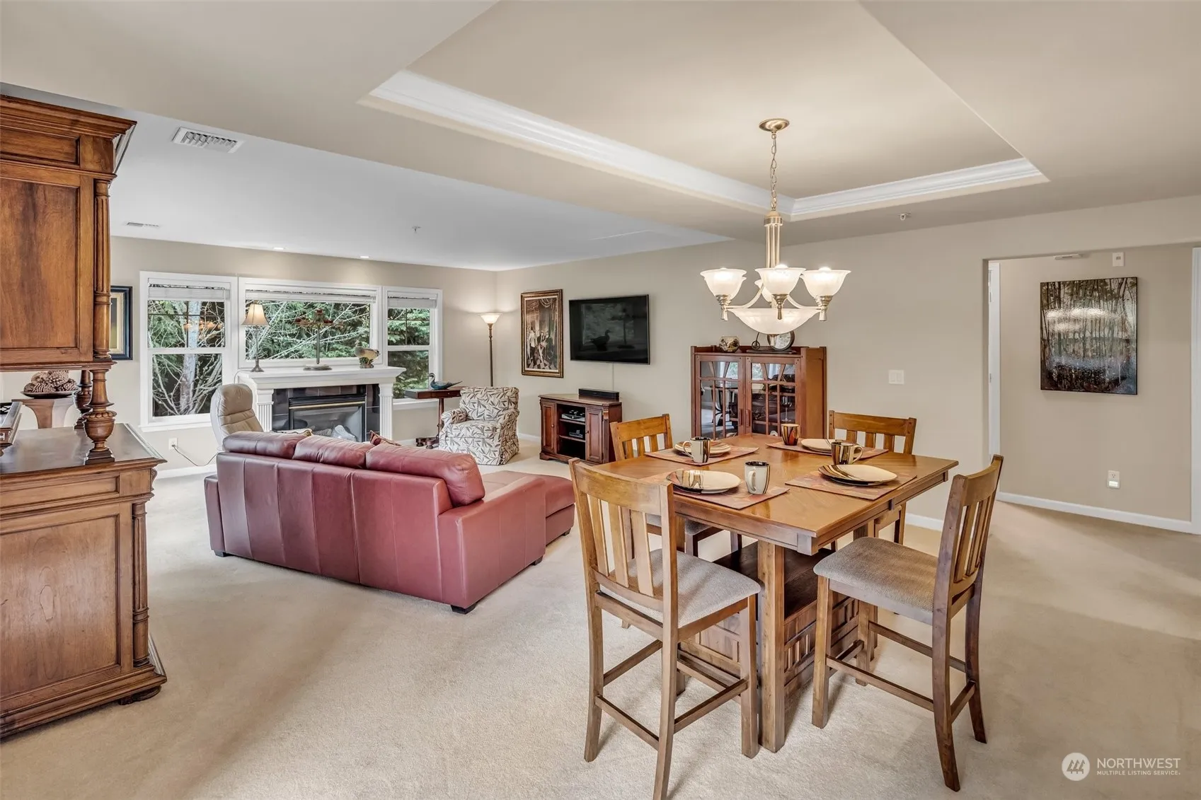 Luxurious 2 bedroom, 2 bath corner home in The Lodge! Impeccably maintained w/many upgrades since 2016 including new furnace, AC, most appliances, & more! Open design living & dining with E/S/W exposure, elegant fireplace & covered view deck. Gorgeous kitchen w/lovely breakfast nook & spacious pantry storage. Beautiful primary suite w/double vanity & 3/4 bath. Guest room on the opposite side of the home. Full bathroom across the hall. Enjoy wildlife viewing as the home backs up to green space! 1-car parking & additional storage in the garage level w/easy elevator access. Enjoy amenities & social activities including: indoor pool, clubhouse, classes, tennis, pickle ball, putting green, pea patch, trails, social/cultural & sporting events.