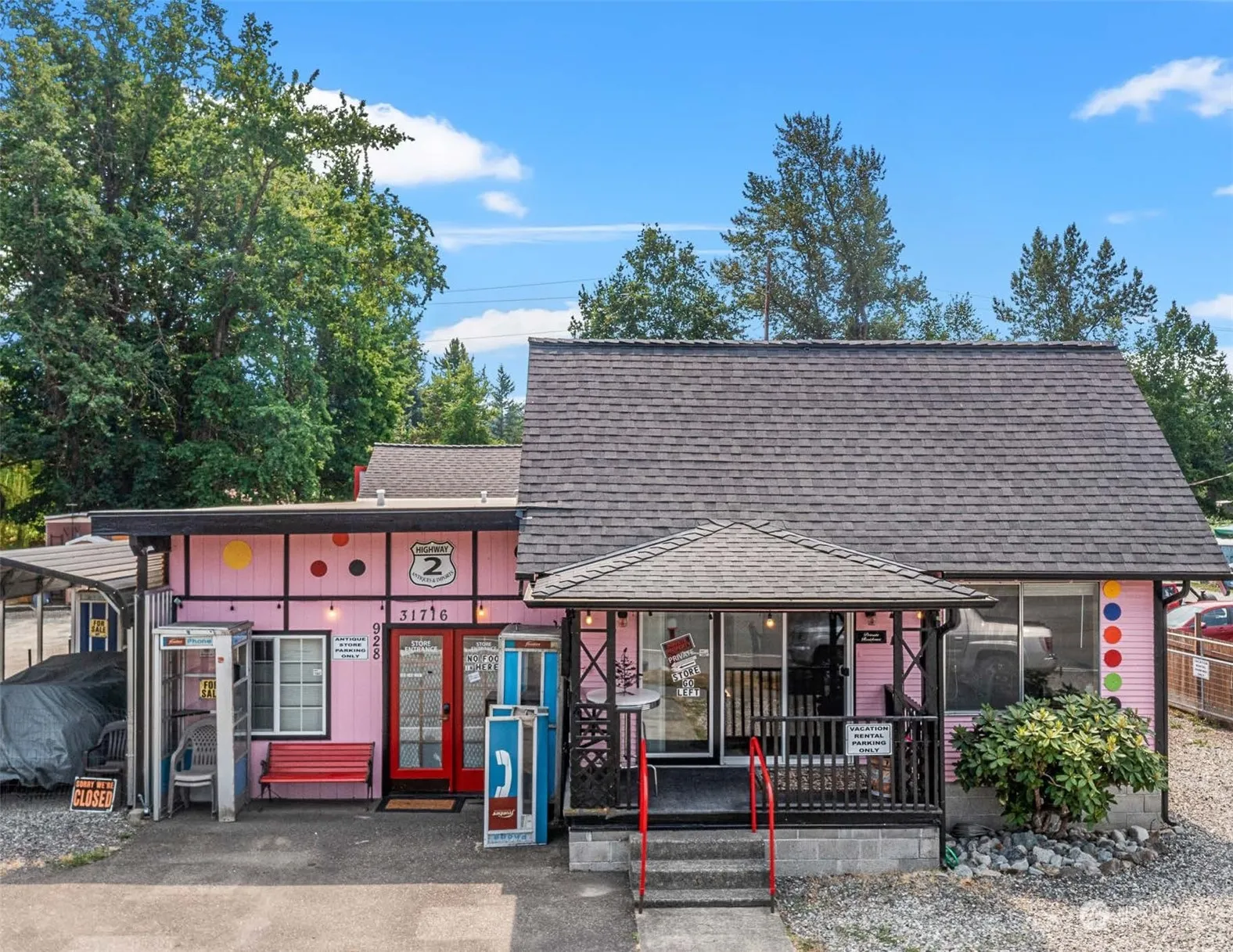 Fantastic commercial , home office and large shop with great space , location.Great opportunity in Eastern Snohomish County! Right in the heart of fast growing downtown Sultan on Highway 2. High visibility. Retail store space, with an attached 1,265 sq’ 2 bedroom 2 bath home. The store space has a 3/4 bath, lots of wide open space, storage rooms, a loft with a 17×6 deck and even a garage area accessed through the back. The backyard is fully fenced with access. This is truly a one of a kind and you will not be disappointed! Retail/Shop about 1800 Square feet.Retail space/shops has 220 electrical. Auto, shop? Very good condition throughout. Newer roof,gutters,outside paint. 2013 huge remodel was complete.