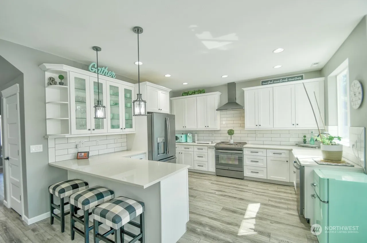 Bling Bling your new home is calling! Experience luxury living in this exquisite custom home nestled in the desirable Tumwater Hill neighborhood. With 5 bedrooms, 2.5 baths and a host of high-end features, this home is a rare find. Enjoy the beauty of chandeliers, walk-in closets, and a stunning bathroom with a deep soaking tub and smart bidet. The kitchen is a chef’s dream with stylish cabinetry and black stainless appliances. The home’s privacy is unmatched, thanks to the lush greenbelt behind it. If you desire a low maintenance yard, this is the property you’ve been looking for. This home truly is a gem! Zillow information is incorrect- property has never been foreclosed on and is not in arrears.
