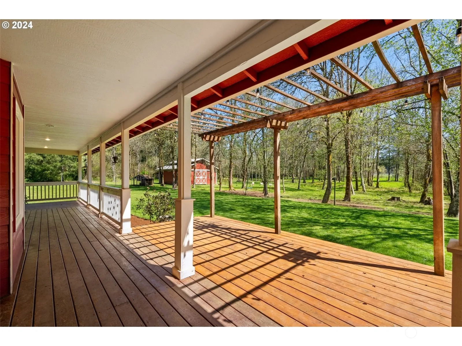 Experience quintessential PNW living in this stunning farmhouse nestled on 5 usable acres with a meandering creek, just 8 mins from Battle Ground, WA. Traditional charm meets modern convenience in this 2566 sqft, 4 beds, 3 bath home, featuring quartz countertops, SS appliances, and maple hardwood floors. The primary ensuite boasts a glass shower, heated floors, and a soaking tub. Relax on the oversized wraparound porch, utilize the 1360 sqft horse barn, and 816 sqft heated shop/garage with 220. With wooded forest land, flat pastures, and enchanting outdoor spaces for entertaining, this property offers the perfect blend of rural tranquility and urban accessibility. Close to Battle Ground, WA, 30 mins to PDX, and the Lewis River Rec Area.