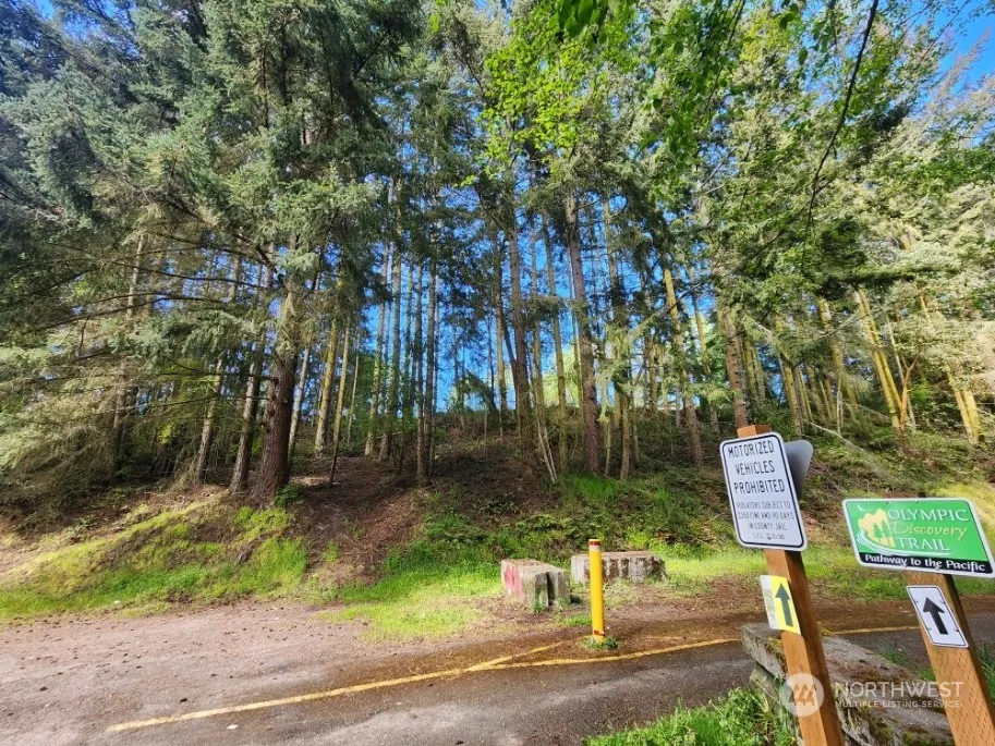 This 1/2 Acre lot is ready is to go. With Water, Power and a Septic on site. This lot is bordering the north side of the Olympic discovery trail. Ready for you to build or place a manufactured home. Cleared out footprint to build surrounded by trees for privacy. Shared driveway access to the property. This is a great price for a Lot. Please do not visit without an agent.