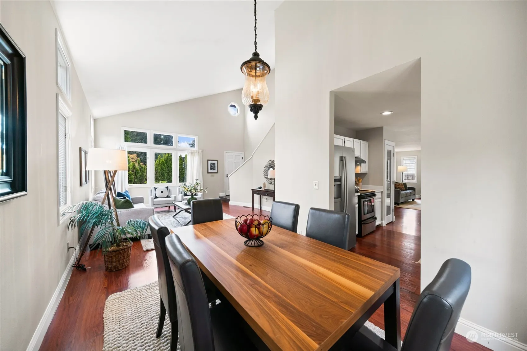 Spacious, yet cozy. Private yet so convenient. Welcome to life on the cul de sac. Step inside to discover a warm & welcoming atmosphere, where natural light dances through the windows, illuminating the massive vaulted ceilings. Choose a large living room off the dining space or a cozy family room off kitchen w/ wood FP. Spacious kitchen boasting ample counter space & an area to enjoy casual meals or in dedicated dining room. Retreat to the primary suite, a peaceful oasis complete w/ 2 large closets, and an en-suite bathroom. Two additional bedrooms & a landing area perfect for home office. Deck space off the back with an expansive yard. 2 car garage and Meadowdale park across the St. Come home and relax.