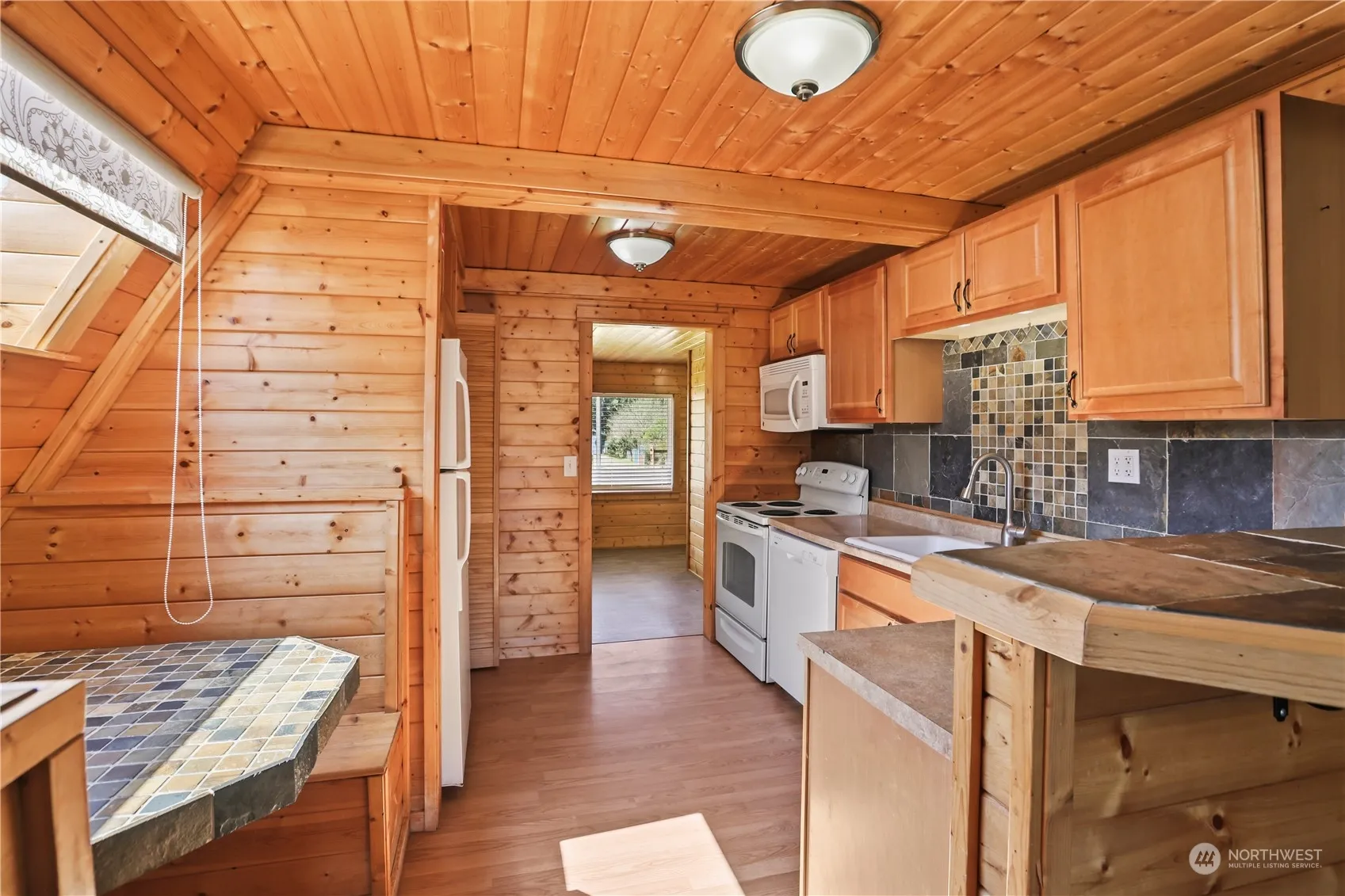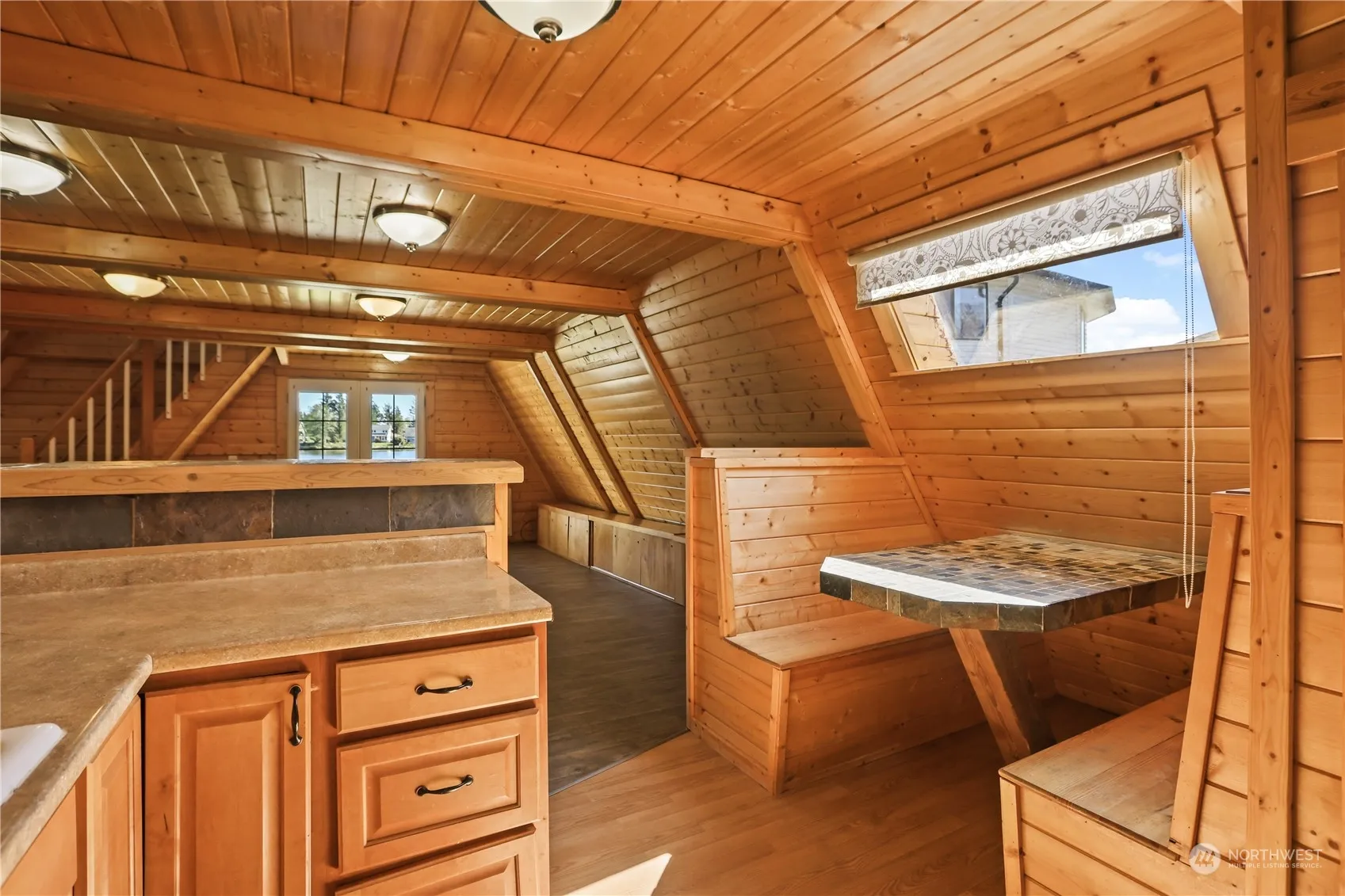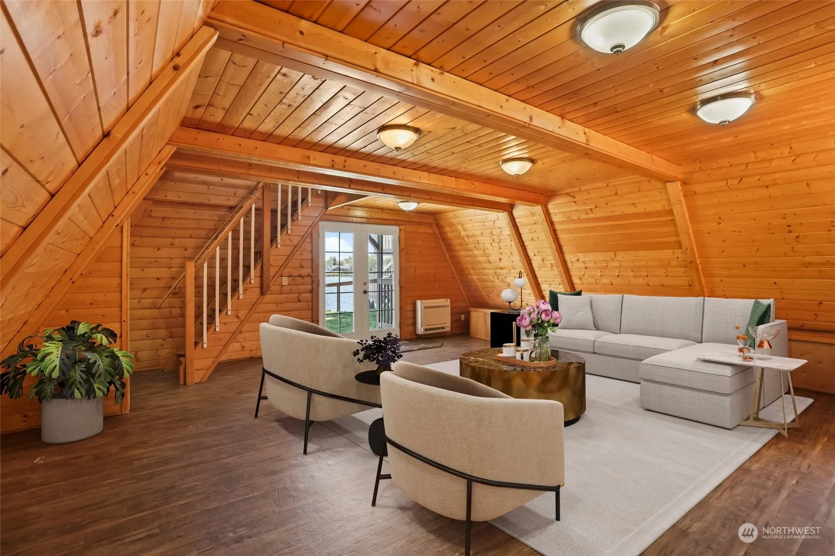 Stunning views and 100′ of waterfront serenity on .59 acres! This rare home is situated on one of the widest parts of Duck lake with the most picturesque scenery in Ocean Shores! Grab your kayaks and paddleboards and step into the water from your backyard! For a change in scenery, the ocean is just a few minutes away! Decorated in rustic pine, this amazing A Frame has vaulted ceilings, beautiful laminate floors, built in dining, and a huge shop in the back! Detached garage is newer, and has an additional 576 sq ft of finished living space that could be used as an MIL, gym, studio, or even a rental! Huge 1/2 acre + lot is fully fenced with an automatic security gate! Newer roof, gutters, ductless mini-split, and plumbing in 2021!