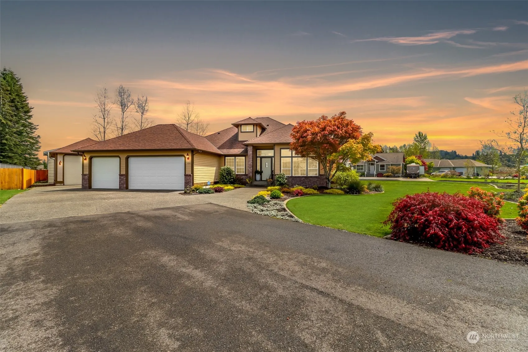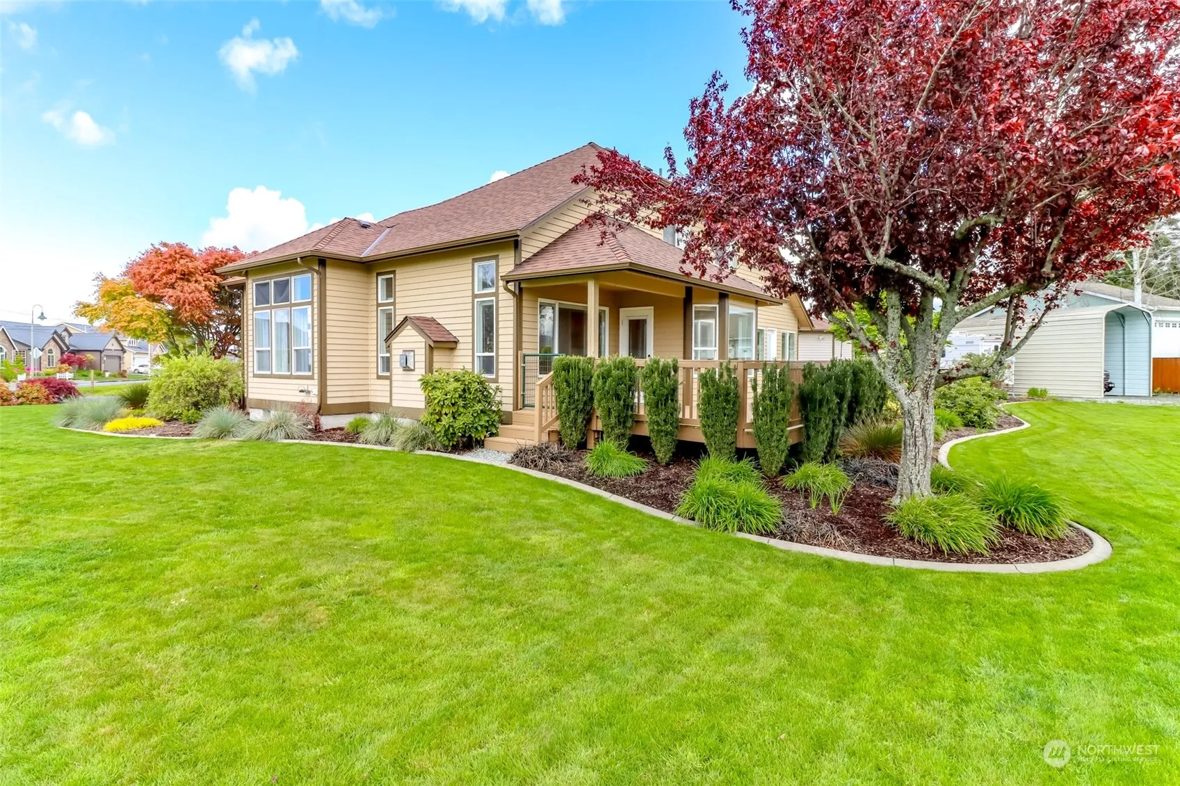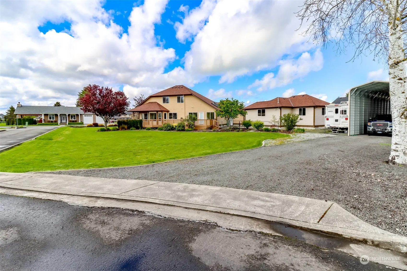 Beautiful custom home with shop on a level half acre Mt Rainier view lot. Plenty of covered spaces to park your RV, boat, or cars and have room for a workshop. Located on the corner of a quiet street. Spacious entry to formal living room, dining room and den/bedroom. Kitchen features granite counters, SS appliances, island, and dining nook. Enjoy your morning coffee on the back deck with a mountain view. Main level primary bedroom is conveniently located near the laundry room and features a walk-in closet and attached bath w/jetted tub. French door opens to the deck. Upstairs are 2 large bedrooms and a full bath. Attached 3 car finished garage, detached 2 car heated shop, RV parking with a separate drive entry. Beautifully landscaped yard.