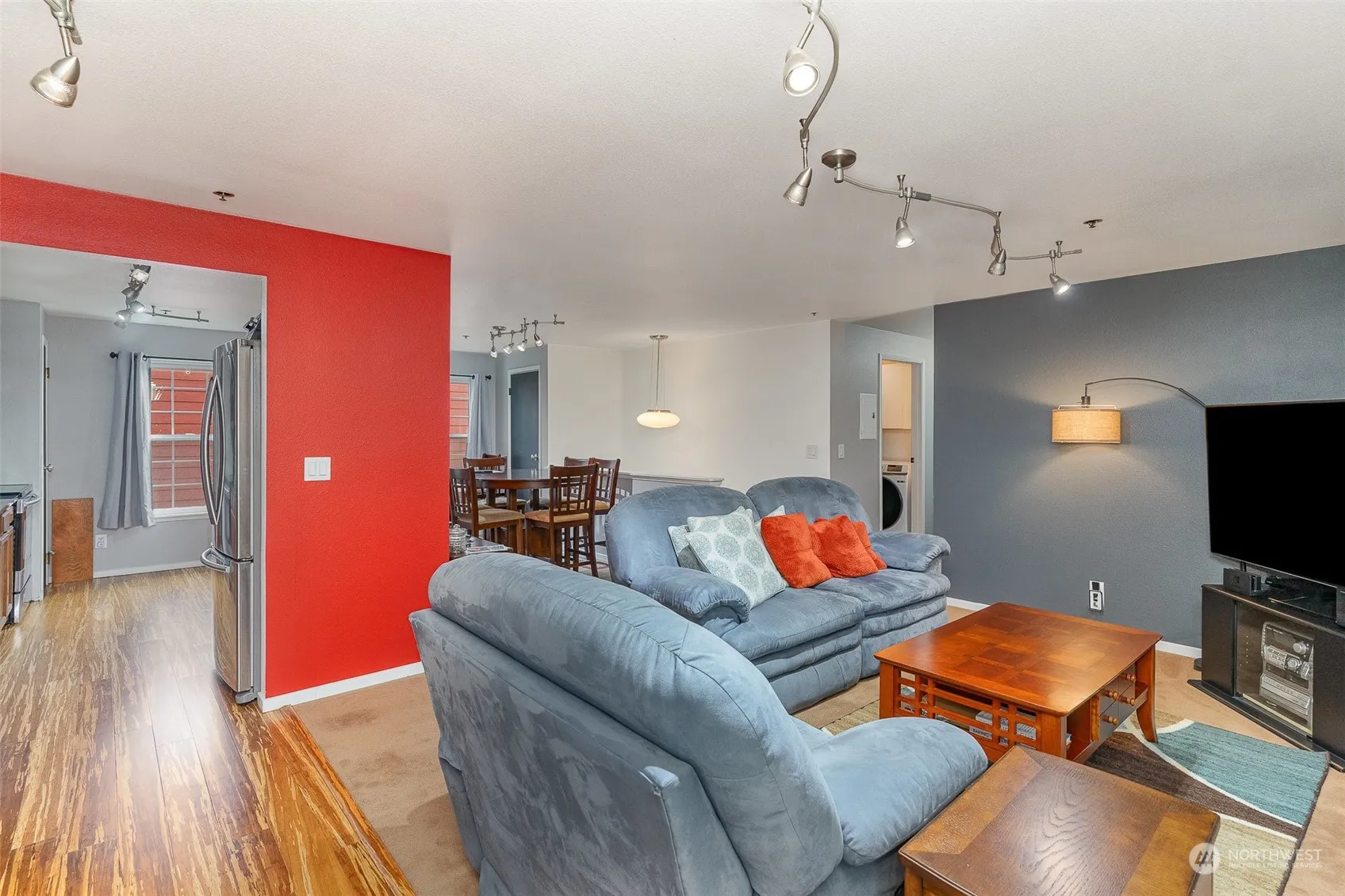 Welcome to Carriage Row, which boasts a comfortable and inviting living space! This condo offers both style and functionality with its modern amenities. The bamboo flooring and stainless steel appliances in the updated kitchen add a touch of elegance, while the large pantry ensures ample storage space for essentials. Extra storage space on deck and garage. The wood-burning fireplace creates a cozy atmosphere, and with two large bedrooms, primary featuring a walk in closet, and both bedrooms featuring a bathroom, provides plenty of space and privacy. Located in a quiet yet convenient area adds to the appeal.