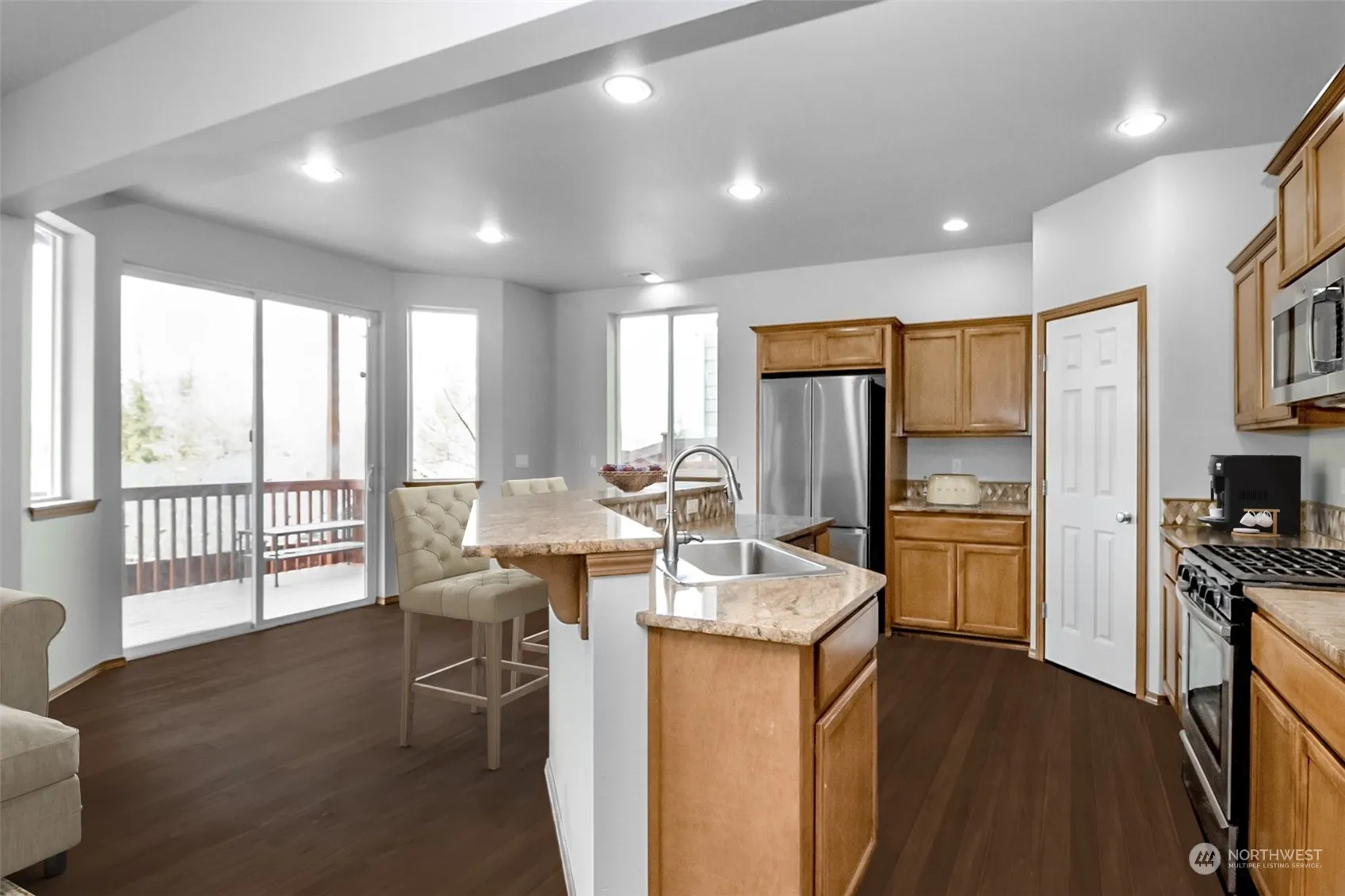This impeccably kept home in a serene Bothell neighborhood offers a sleek, open-concept living space. The kitchen has all new stainless steel appliances, granite countertops, and plenty of storage. Indulge in the luxurious master suite, which includes a spacious walk-in closet and a private bathroom. Key features include a warm fireplace, elegant hardwood flooring, and a dual-car garage. Outside, the property boasts a beautifully landscaped side yard with a patio, and a large deck in the backyard that offers stunning mountain views—ideal for outdoor entertainment and leisure. Situated near top-rated Northshore schools and a variety of shopping options like PCC, QFC, and Costco, and with easy access to major highways including I-5.