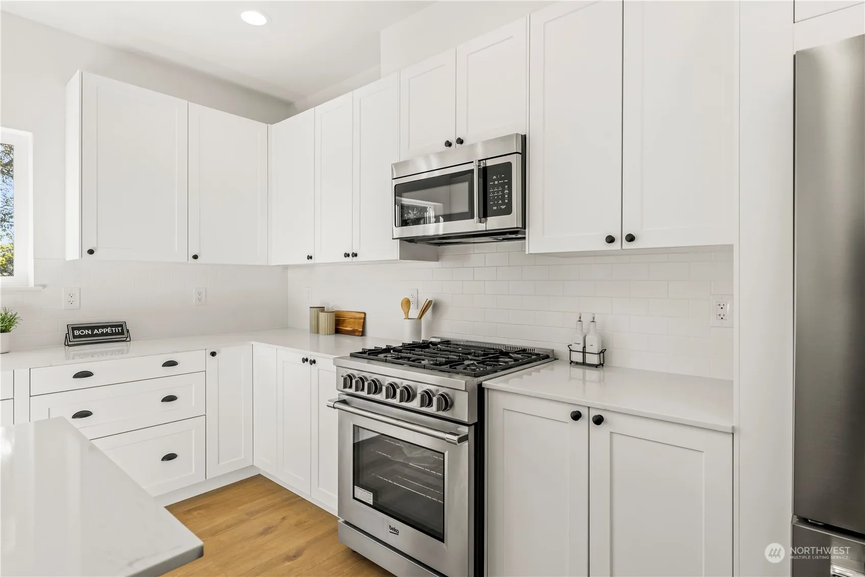 Luxury New Construction in Burien by J&T Development. Exceptional home with large lot on a new private cul-de-sac. 4 bedrooms plus an office for working from home. Home is complete with designer finishes, gourmet kitchen, upgraded appliances, LVP floors, upgraded trim & fixture package included. Huge 2 car garage with driveway, deck off the kitchen, and large fenced yard. New street may not show on your GPS yet so look for us on SW 122nd Street between 1st Ave S and 4th Ave SW.