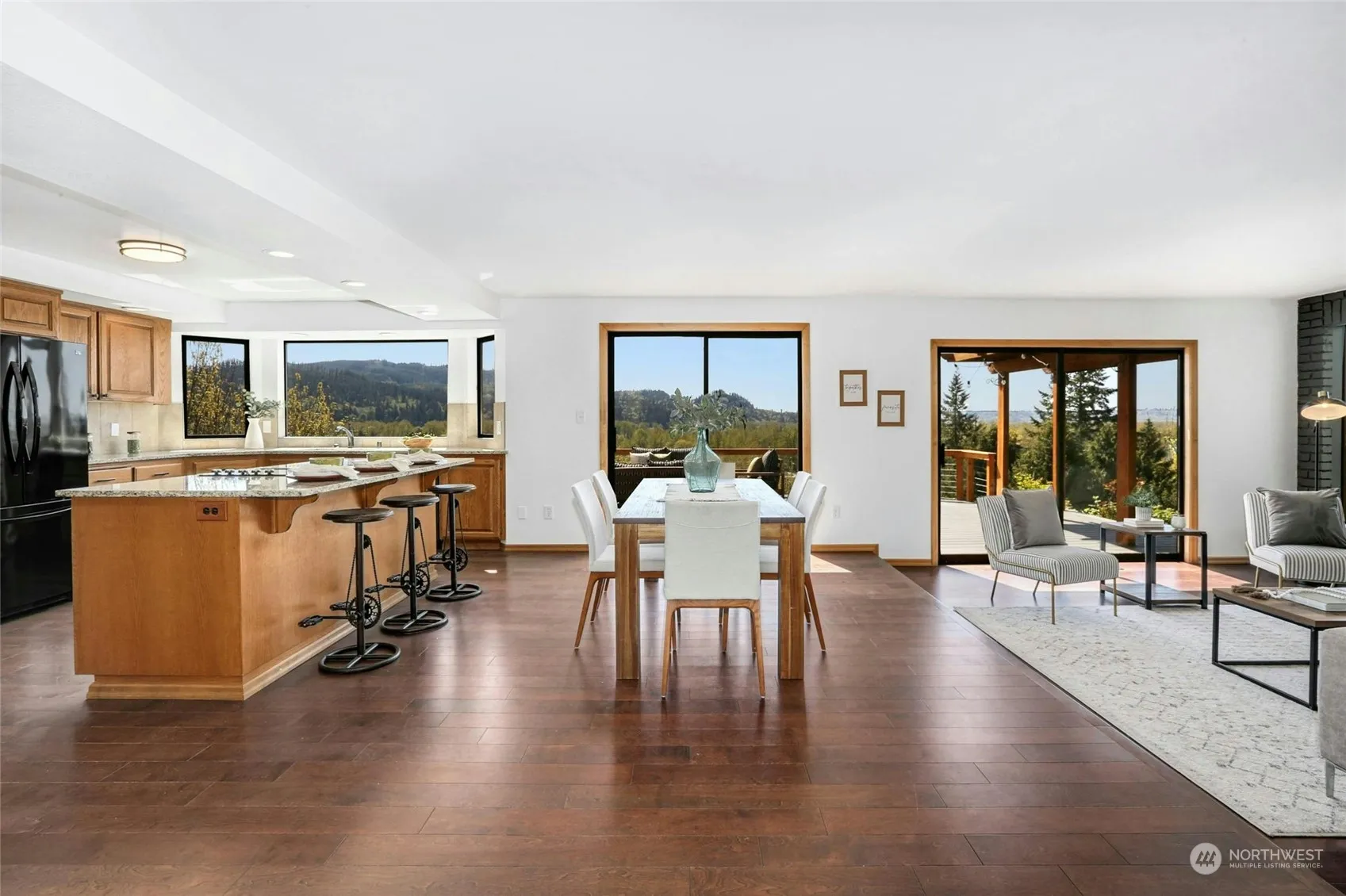 Experience endless vistas from this charming mid century rambler. Nestled on a 1.25-acre gated parcel. Step inside a re-modernized interior boasting a thoughtful floorplan. The expansive great room w/ fp sets the stage for comfortable living, flowing into the updated kitchen w/ hardwood floors, granite countertops, & tiled accents. Modern appliances ensuring convenience & style. Retreat to the grand primary suite, where panoramic views greet you. W/ dual walk-in closets, a lavish bath, & an oversized walk-in shower, this sanctuary promises unparalleled relaxation. 2 more sleeping qtrs & full hall bath are nearby. An oversize view deck creates outdoor sanctuary. Also, mud/utility room, 2 car garage. Don’t miss this rare opportunity!