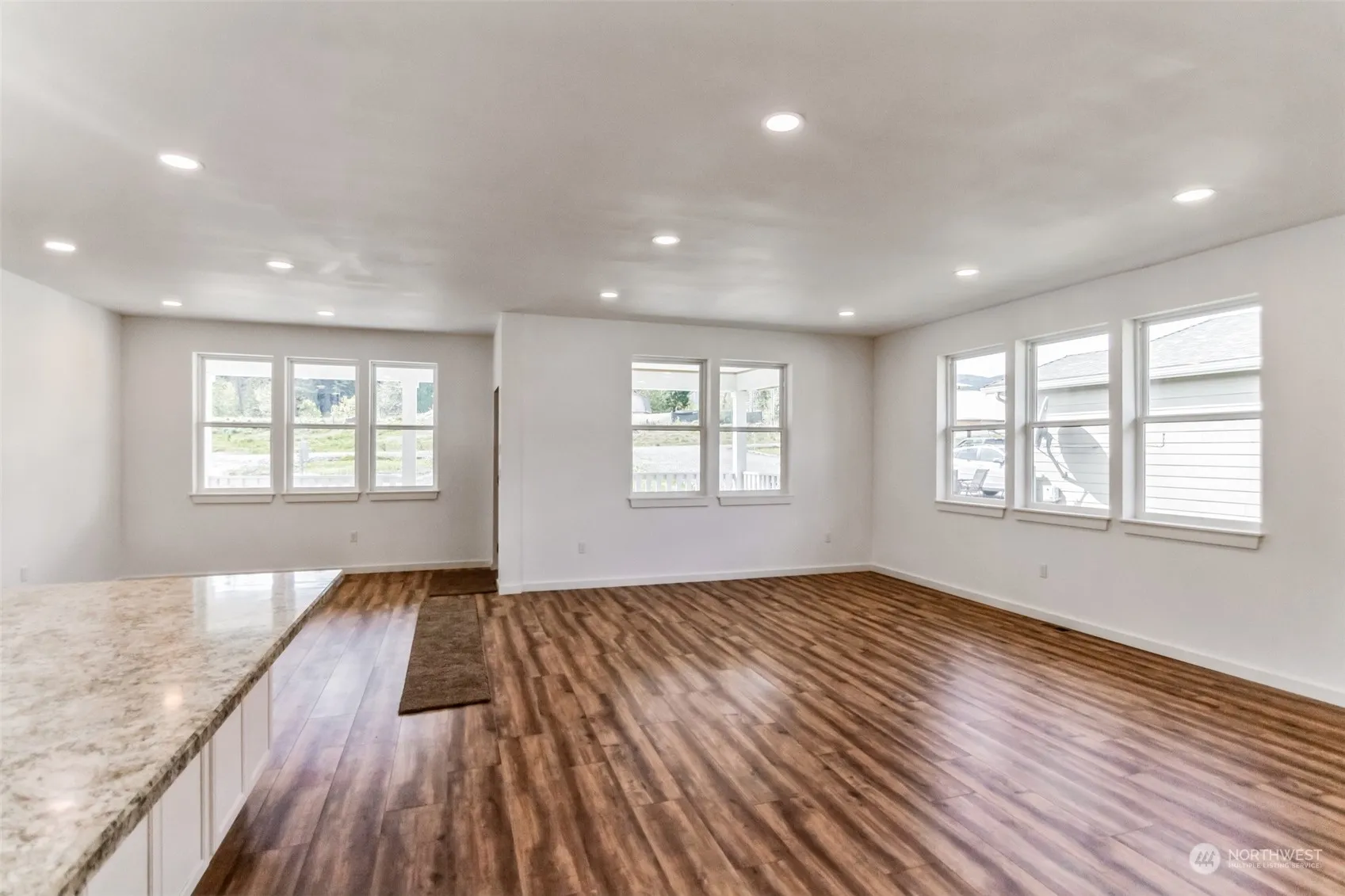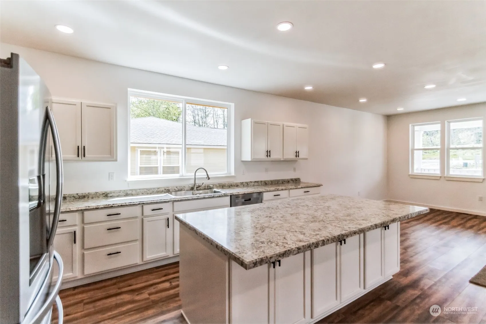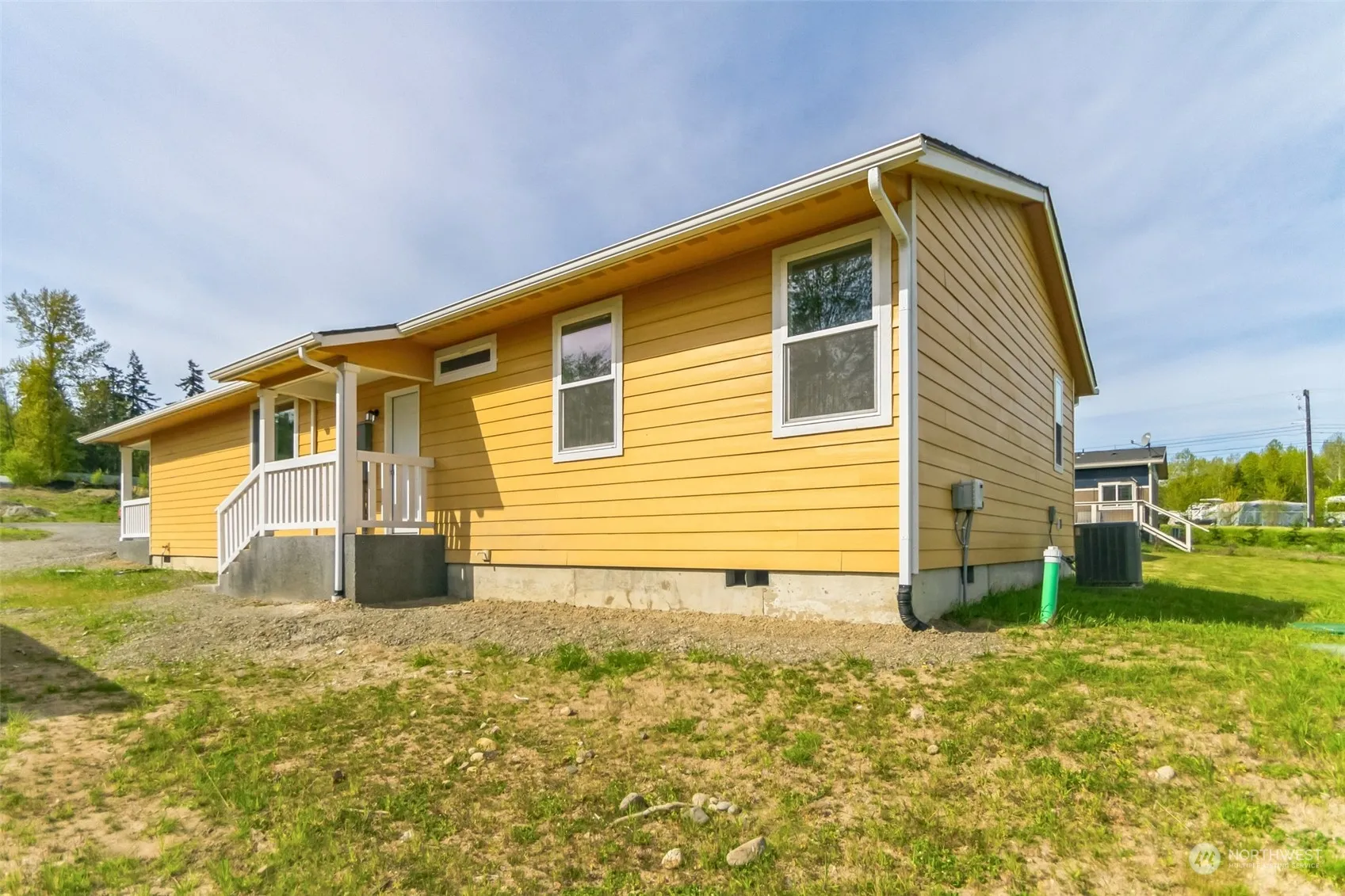 New Construction Stick Built Home with a Charming Front Porch and a Nice Deep Shy 1/2 Acre Lot! Wide open floor plan, lots of vented windows, pet and dust friendly hard surface flooring and recessed can lighting in the main living areas. Clean white cabinetry, oversized island with eating bar and stainless appliance highlight the large kitchen area which is adjacent to eating/ study area. Double closets, overhead lighting and dirt-hiding carpet in the bedrooms. Primary ensuite features double sink vanity, standup glass shower and an additional closet/linen storage.