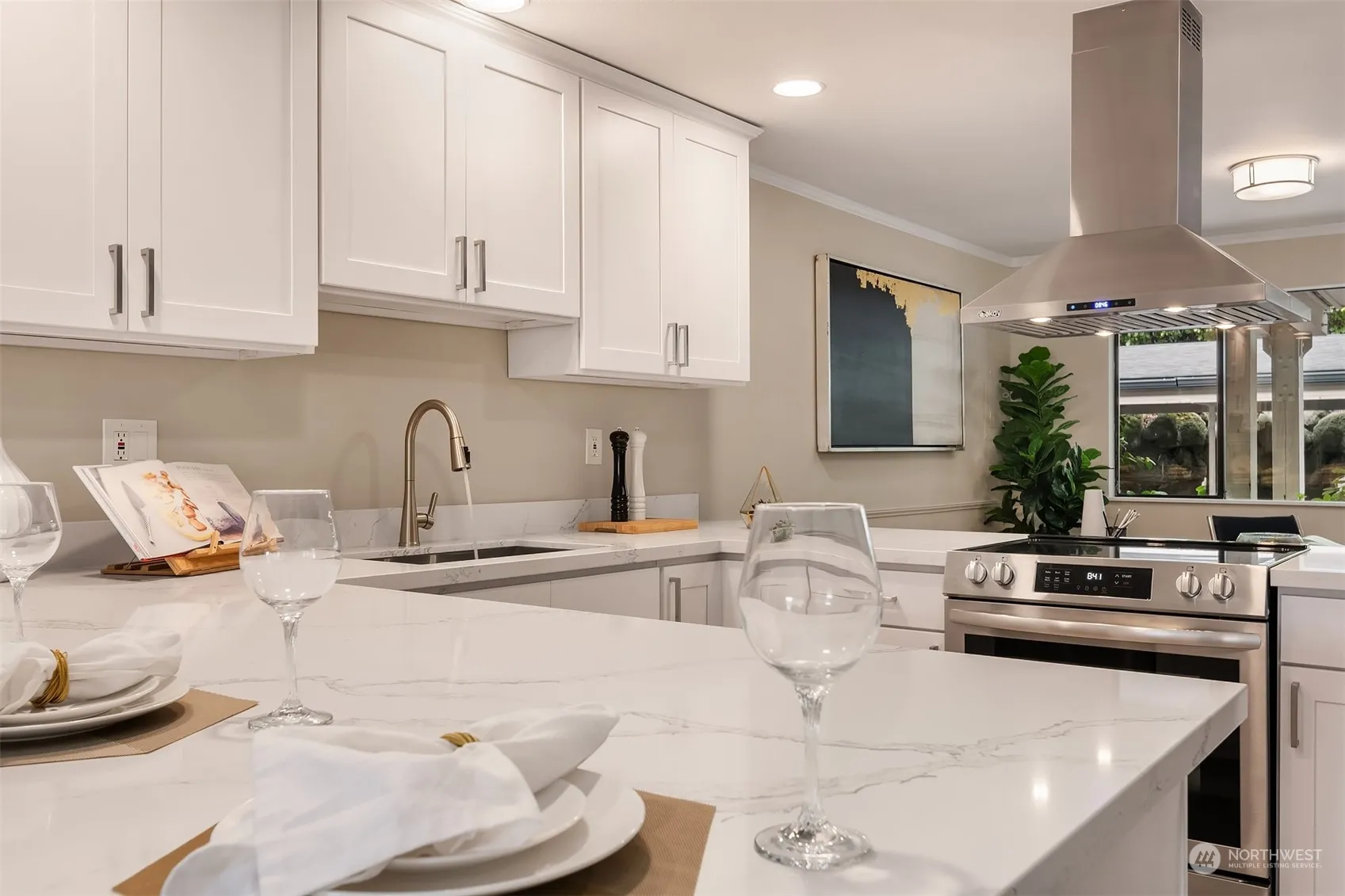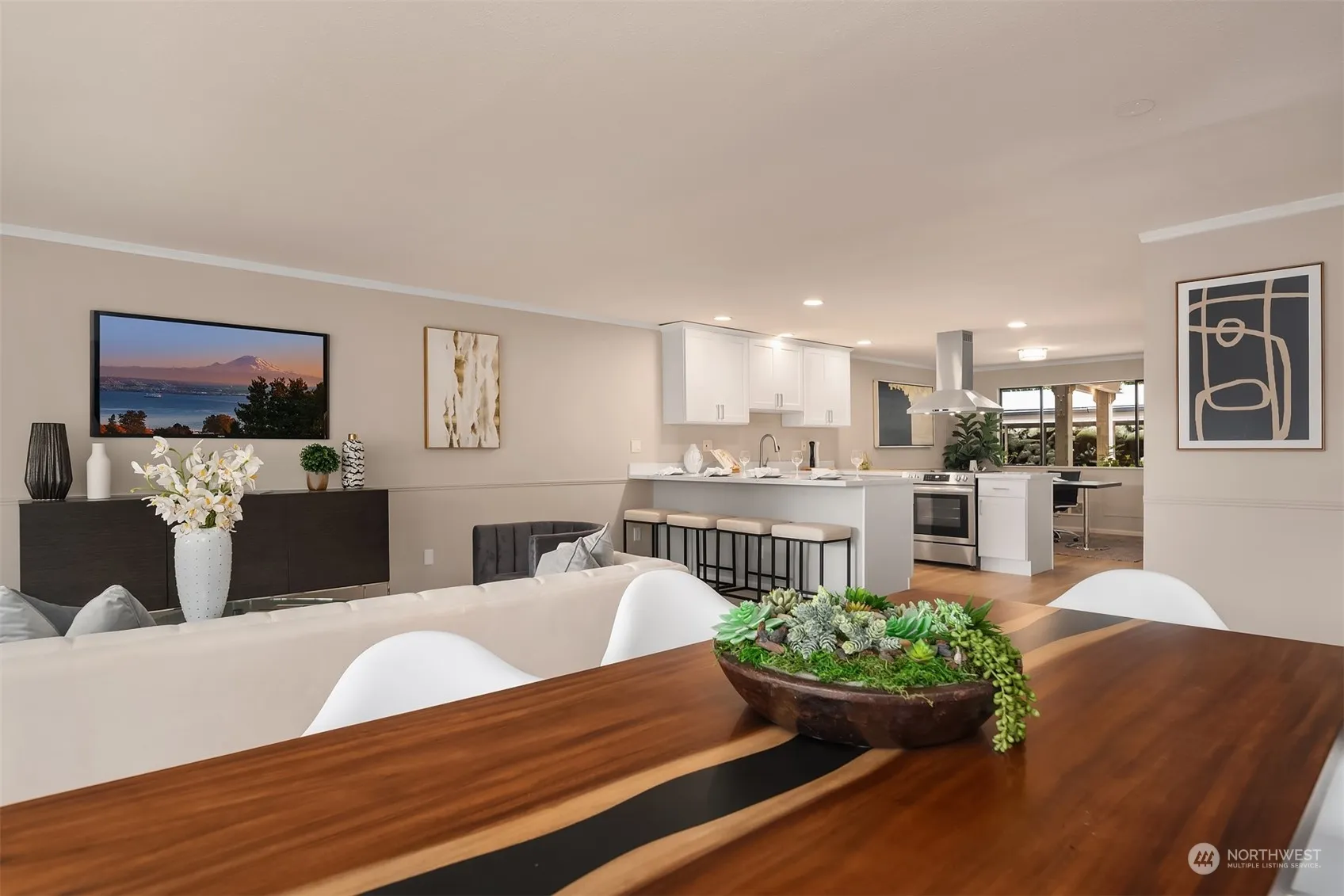Renovated ground floor entry condo in Mercer Island’s coveted north end. This Islandaire home offers sparkling new quartz/stainless kitchen, updated bathrooms, and new paint/carpeting in 2024. An inviting, open space flows seamlessly through gathering areas to entertainment sized balcony overlooking community pool. Enjoy morning sunrises and territorial views from comfort of your own home. Currently configured as two bedrooms, with approved plans to easily convert to three if desired, providing ample space for privacy and relaxation for residents/guests alike. Located near Met Market & Town Center, with convenient access to Seattle and Eastside, you’ll find all shopping, dining, entertainment and outdoor activities the PNW has to offer.