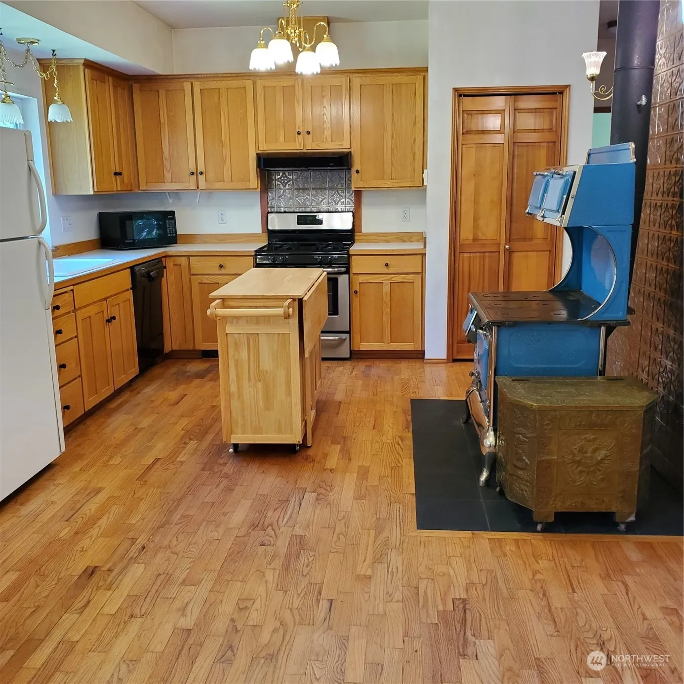 Picturesque hilltop farmhouse style home on 3 acres, only 2 miles to quaint Eastsound Village. Enjoy wrap-around covered porch, metal roof and 7′ foot deer fences in front and back. Main floor and lower level each have bedroom with ensuite bathroom. Wood burning fireplace with insert on main level and propane fireplace with cherrywood mantel in downstairs den. Beautiful 1922 wood burning cook oven, in addition to modern appliances in the country style kitchen. Nine foot ceilings and Oak floors on the main level and staircase and wood flooring in the lower level. Mahogany doors throughout. Fiber optic internet and security system. Lower level designed and plumbed for separate living area. Your forever island home or starter home on acreage