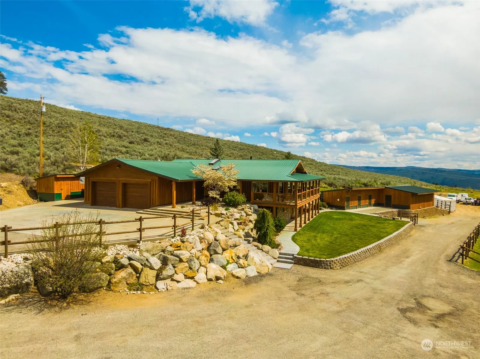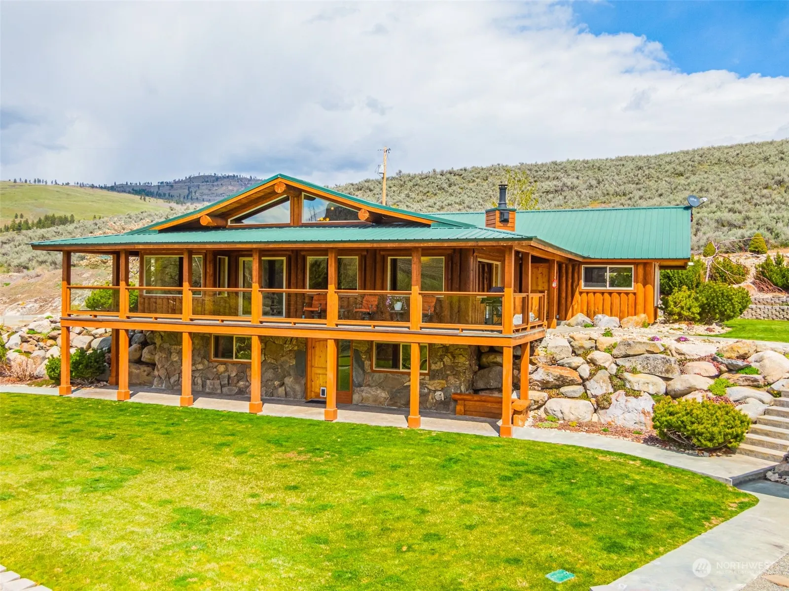 Stunning Custom Log Home on nearly 10 acres looking at Buck & Fox Mtn’s. Main floor grt room w/kitchen, dining & living room featuring rock faced gas fireplace w/breathtaking views. Easy access to deck & front/back yards. Main bedroom suite w/jetted tub, shower, walkin closet & bonus closet. Daylit downstairs has sep entrance w/2 spacious bedrooms, office, kitchen & 2nd living room w/rock faced wood stove, laundry & full bath. Home has HVAC & ind. turbo heaters. Attached 27×30 2 car garage w/access to backyard/storage/outbuilding, 400 amp service w/50 amp RV hookup. Gravity fed water to home, underground irrig. including pastureland & fire protection from 100+ gpm well & 5000 gl reservoir. 3 min to Leader Lake/20 min to Loup Loup Ski Mtn.