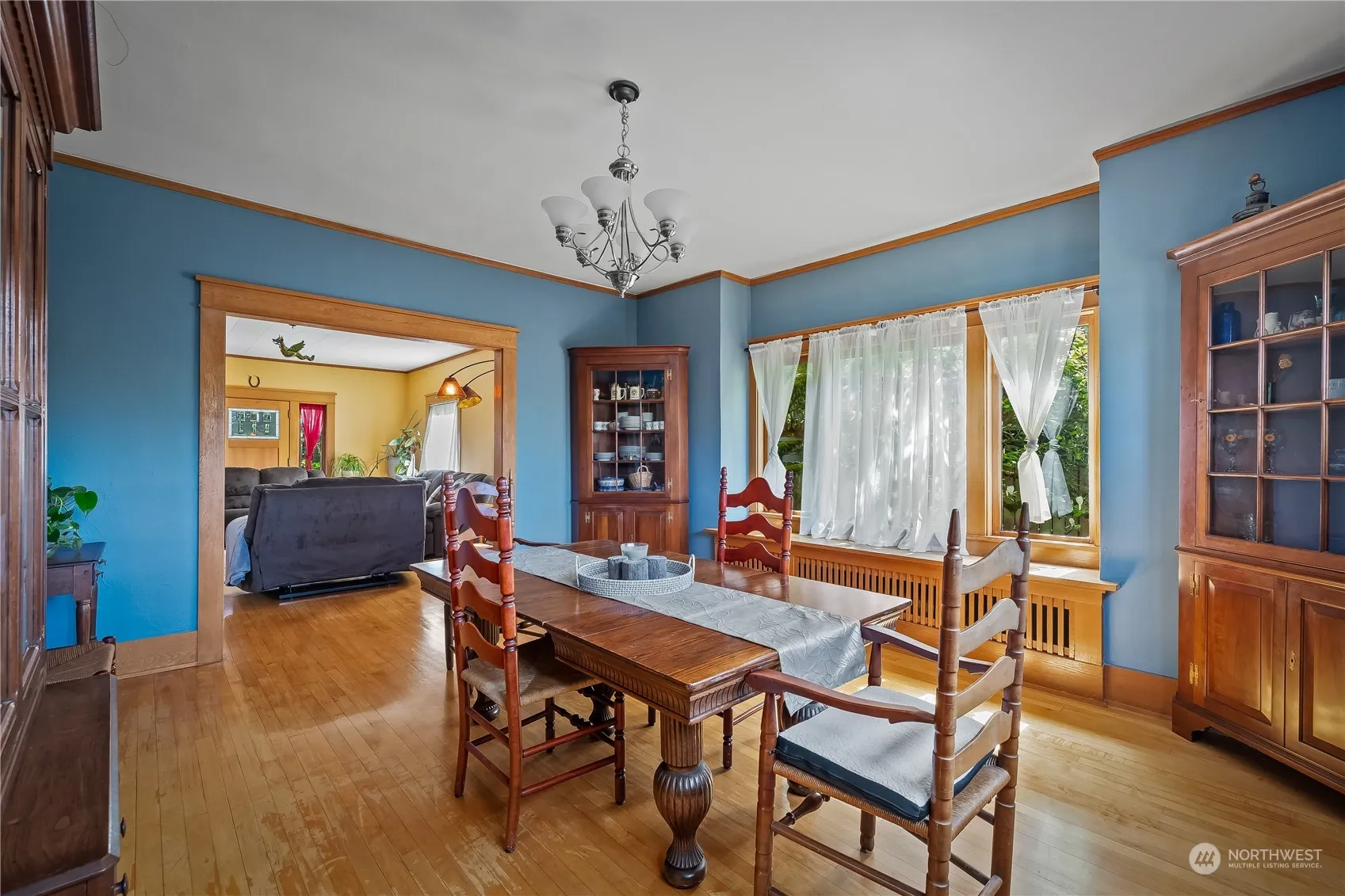 Historical beauty w/modern amenities! Immaculately kept 1915 home on a sprawling corner lot w/maple, cherry & magnolia trees. High ceilings, ornate light fixtures, original hardwoods & impeccable millwork. Updated kitchen w/marble counters, farmhouse sink, custom cabinets, gas stove & stainless appliances. Family room w/gas fireplace & ornate Mullion windows. Formals. Spacious bedrooms w/custom built-ins & portable sauna. Fridge, washer/dryer included. Private, fenced backyard w/newer 5-person therapeutic hot tub & garden space. Detached garage, attached carport & semi-circular driveway. Partially finished basement w/utility sink, workbench, canning room/wine cellar & laundry chute. So much history, solidly built home in quiet neighborhood!