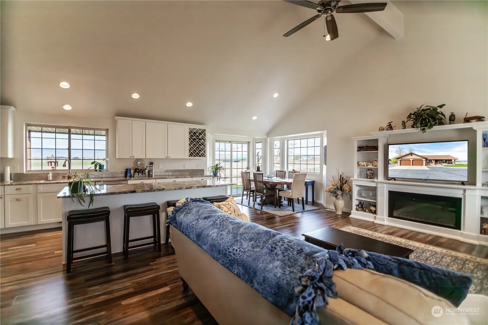 Welcome to this charming 3 bed, 1.75 bath home with vaulted ceilings & a open floor plan. There is a perfect blend of comfort and convenience in this updated home featuring a modern kitchen for entertaining. Nestled on a generous 1.97 acres, this home offers plenty of space for outdoor activities and includes a 36 x 48 shop with 14 ft doors that is perfect for storage space, projects or even a home business. The exterior is partially fenced with underground sprinklers & a nice private back deck. Conveniently located, commuting is a breeze, offering easy access to nearby amenities. With its desirable features, convenient location, and expansive lot, this property offers a rare opportunity to embrace the lifestyle you’ve been dreaming of.