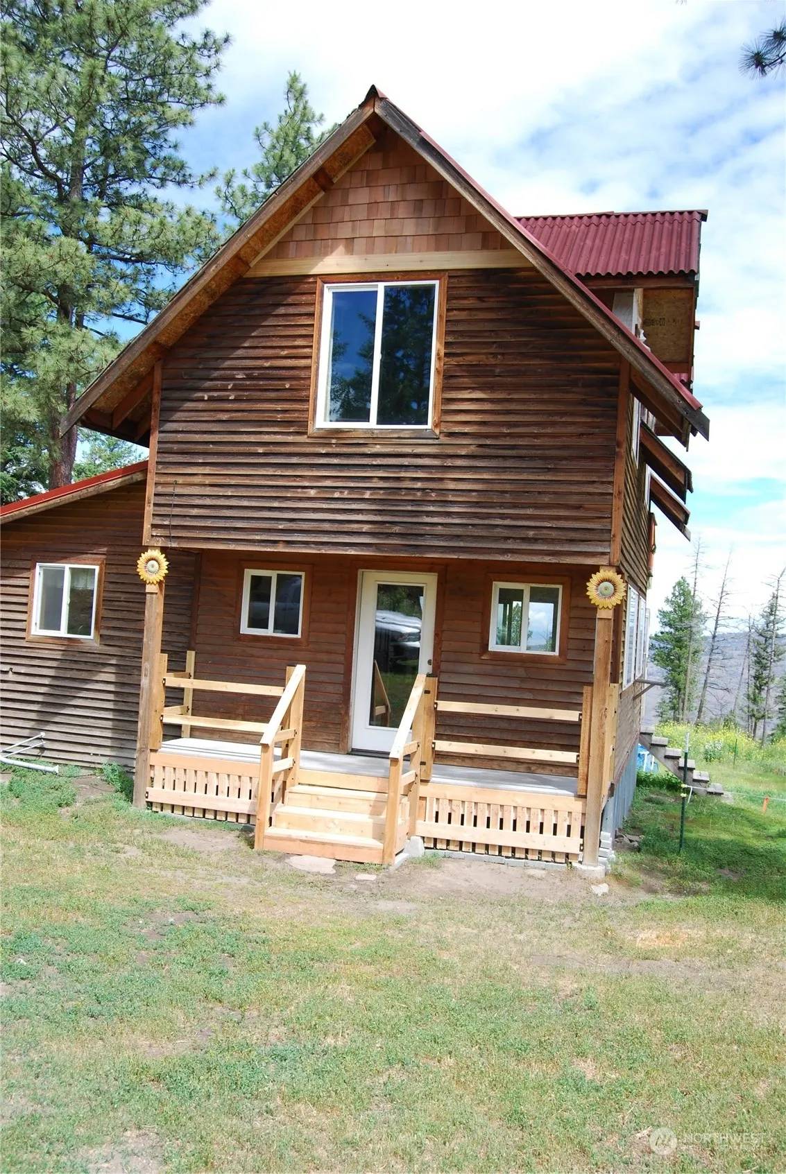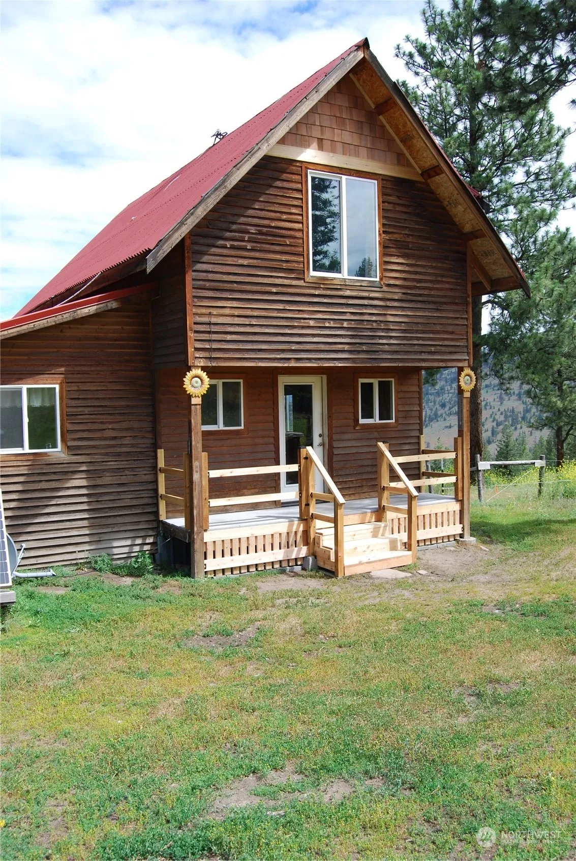THE SELLERS CONTINUE TO MAKE IMPROVEMENTS! Views abound at this location from every window, door & throughout the entire property. A very special Off Grid home w/completely updated kitchen w/butcher block counters, solid wood cabinets, undercabinet lighting & tile backsplash. The inviting living & dining areas are filled w/light from multiple windows, warmth from a gas insert & wood stove, newer flooring & access to a covered deck facing the magnificent views. The large bathroom has a jetted tub w/views through the adjacent window. There are 2 spacious bedrooms upstairs, one w/access to 2nd floor deck. Multiple outbuildings can be found around the property w/chicken coop, barn & shop just to name a few. New batteries and backup generator!