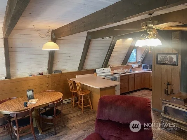 Enjoy all 4 seasons of fun in Pine Loch Sun Community. Many hiking, biking trails and snowmobile right out your doorstep. In the summer enjoy gorgeous Lake Cle Elum with its beaches and boat launch. There is also the community pool, sport court and clubhouse. Come see this cozy 3 bedroom A frame on a wooded large level lot. Lots of room for parking and activities. There is also a firepit and basketball hoop. Large front deck to relax and bbq on. Back deck to covered shed for storage of firewood, outside furniture or even snowmobiles. Main level bedroom and 2 upper bedrooms, each with slider to a private deck. Free standing wood stove in open living, dining and kitchen with eating bar. Easy care LVP thru out the main level.