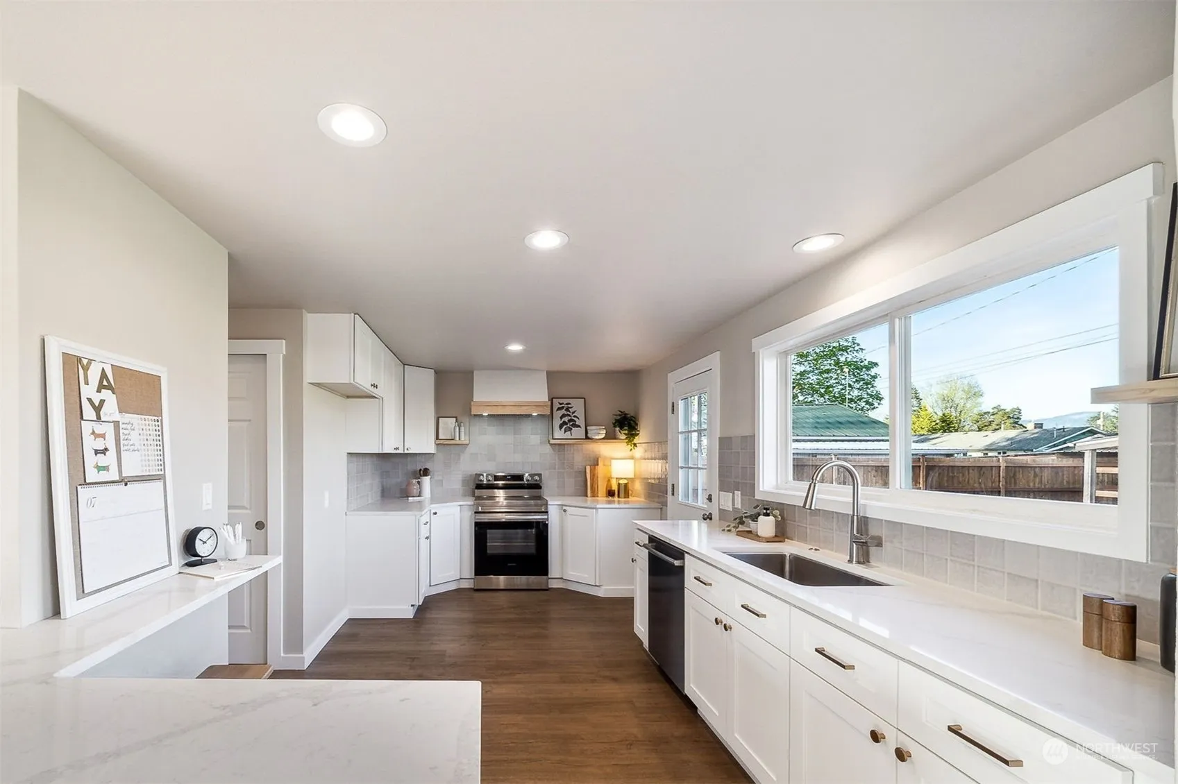She’s got style! From the inside out, this classic Enumclaw RAMBLER honors its mid-century roots while showing off a fully remodeled look. The kitchen takes center stage w/ an organic-modern design featuring brand-new quality cabinetry, marbled quartz & tasteful tile backsplash. Int. & ext. are freshly painted. Recessed lighting throughout. Primary bed w/ ensuite bath. Oversized windows make for bright spaces. The backyard is an entertainer’s dream w/ large deck, alley access, Mt. Rainier views, garden space, shed & RV parking within a fenced 9,282sq.ft. lot. Loraine Street is a total GEM lined w/trees in bloom & very little traffic. Centrally located just steps from bustling downtown; it’s a treasured area that holds its value well!