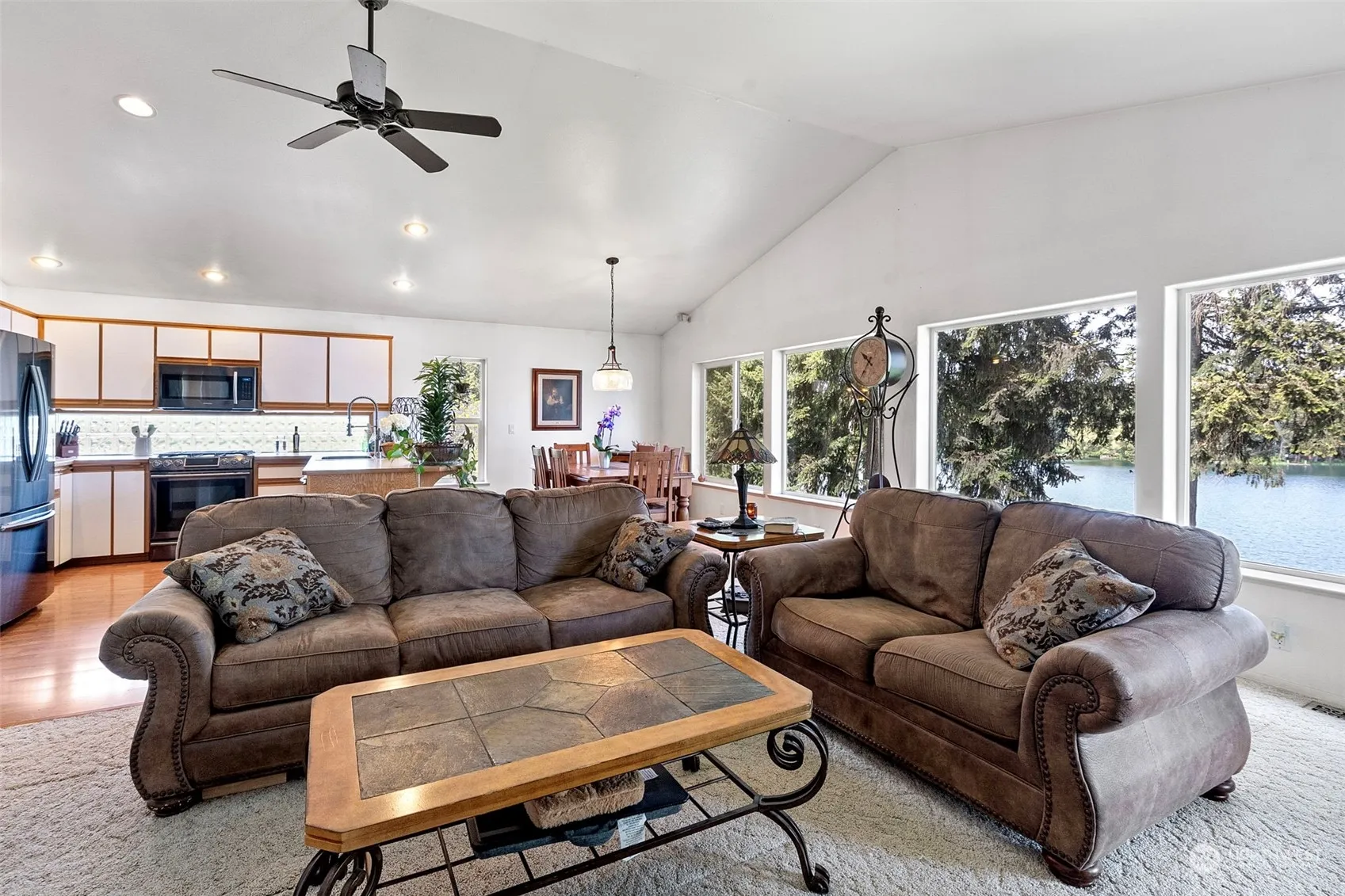 This one has it all! Large waterfront home nestled in a private gated community! You will love the unparalleled views of Clear Lake from your panoramic picture windows. Main floor features expansive living room with vaulted ceilings, open concept kitchen and dining area. Abundant natural light! Unique lower level with separate entrance, spacious bedroom, full bath, kitchenette, dining, and living room. Potential rental/multigenerational living! Step out onto your covered patio and watch the eagles fly overhead. The Clearwood Community is the nature enthusiasts dream location with parks, playgrounds, cabanas, 3 lakes, beaches, athletic courts, and a newly renovated in-ground pool! Easy commute to Olympia & JBLM. Welcome to your new home!