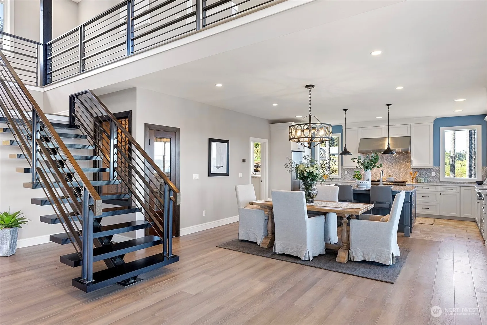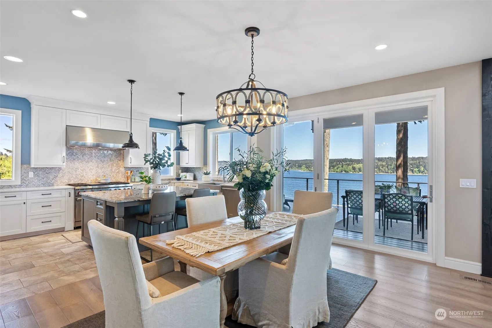 Expansive water views overlooking Colvos Passage & Vashon Island. Enjoy Mt. Rainier & Mt. Baker views, eagles, orcas & boating. Peaceful, gated neighborhood, custom built home, by premier builder, Zetterberg in 2017 to maximize water views and draw in natural light. Live large with 28′ vaulted ceiling, open plan great room/dining & primary bedroom on the main, with dual closets. Chic, modern design, including beamed ceiling, floating stairs, iron railings, accordion doors to covered deck & long-board hardwood floors. Wolf Range, Brazilian granite island & large pantry + mud room, 300+ bottle wine cellar. Summer entertaining on 800 ft of Trex decks in 3 locations, enjoy your fire pit, garden & yard space, & private trail to community beach.