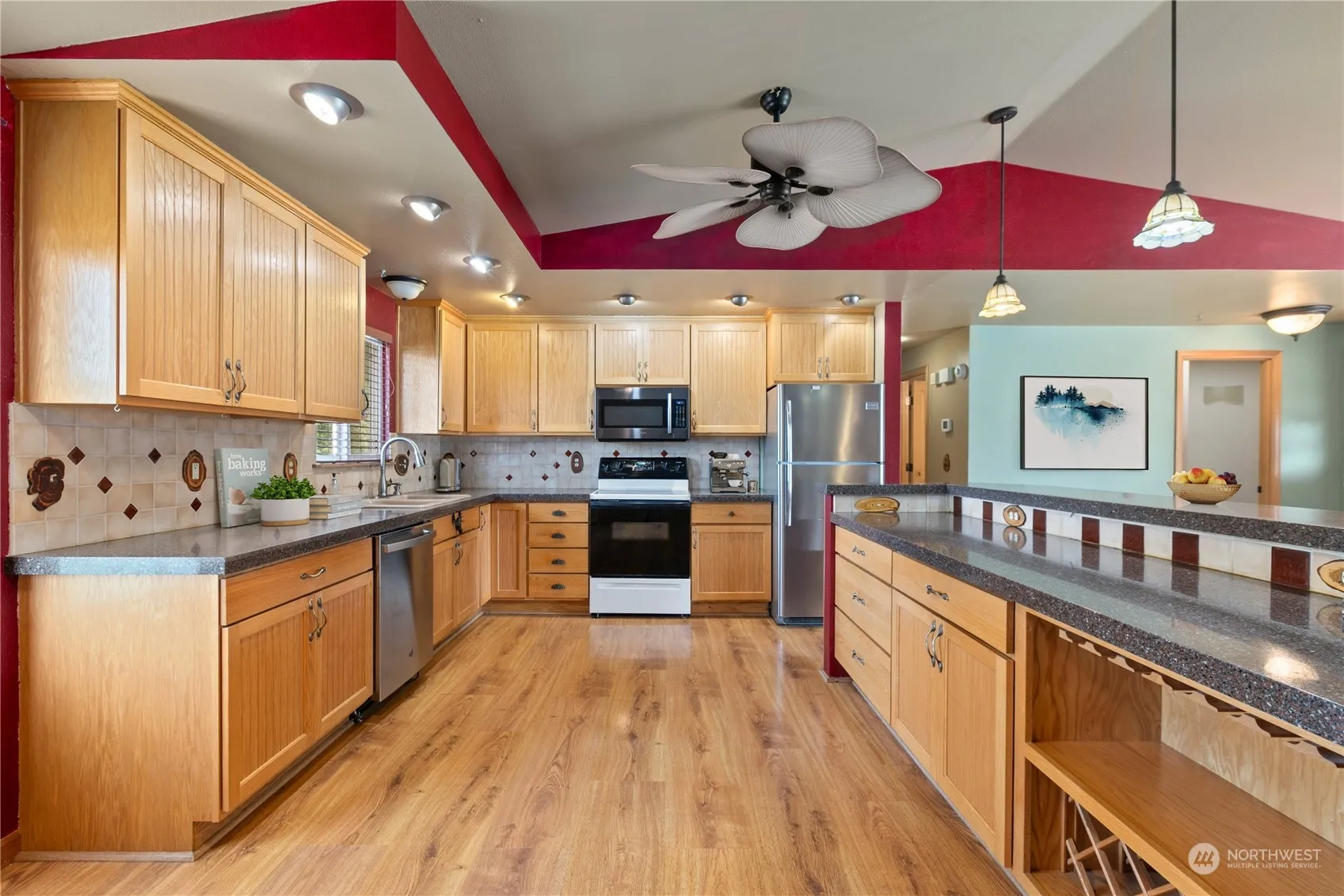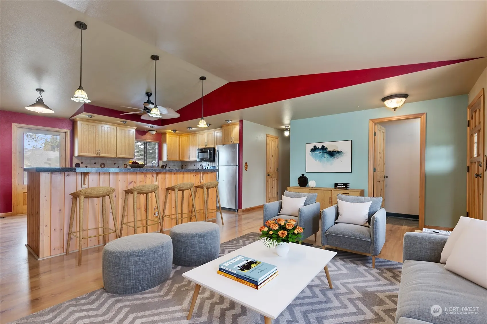 In town Granite Falls single story rambler with 3-bedrooms, 1.75 baths and a very livable 1198 sq ft. Solid wood doors throughout, updated kitchen with large island, updated baths, cozy fireplace and LVP floors. Many recent updates include a new energy efficient gas Forced Air furnace, a/c heat pump, gas hot water heater and new garage door opener. The full crawlspace has been refreshed with new insulation and vapor barrier throughout. Partial mountain view adds a touch of tranquility to the fully fenced backyard with a large deck. Conveniently located within walking distance to local amenities, making errands a breeze. Experience easy living in this move-in ready home. Pre-Inspected.