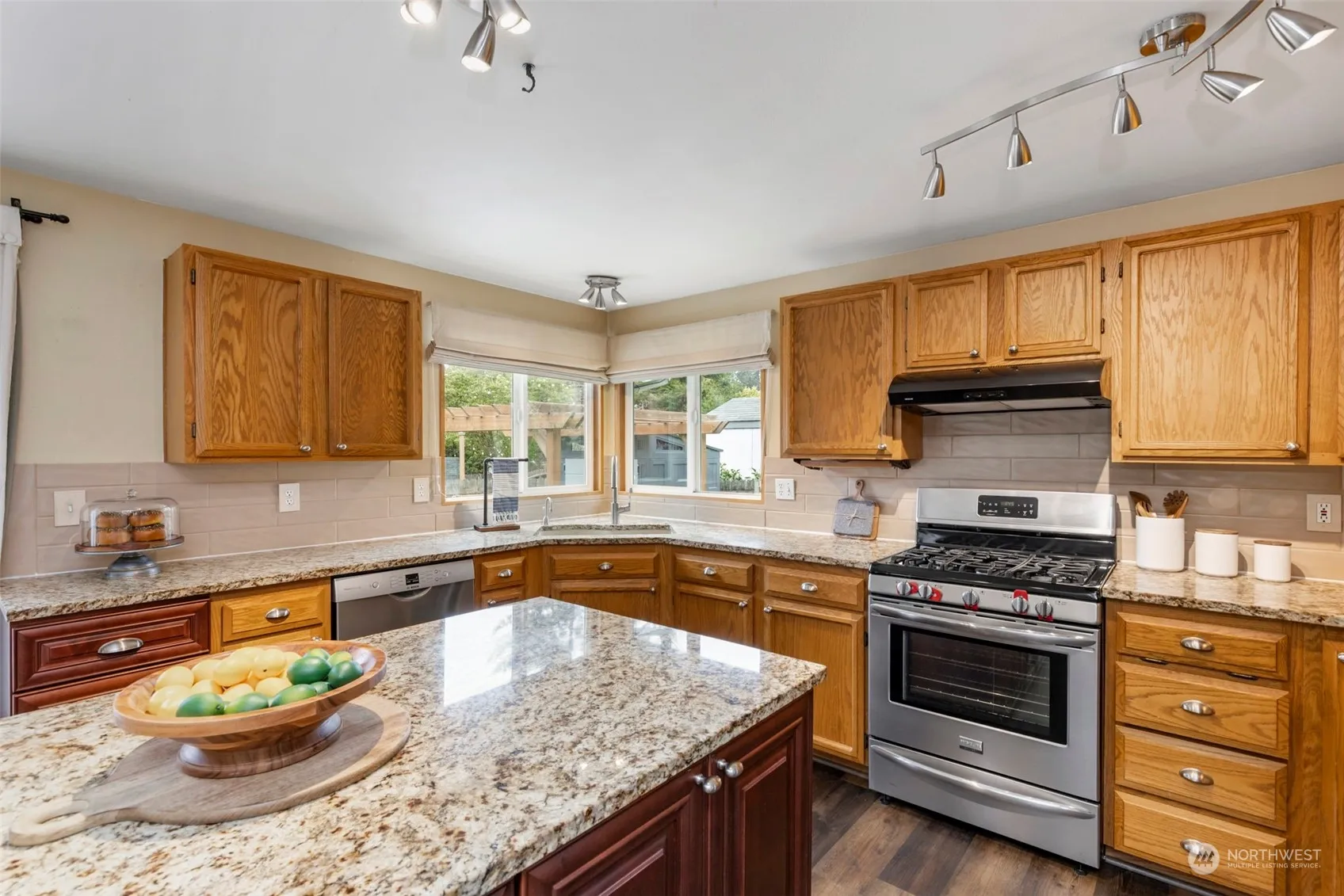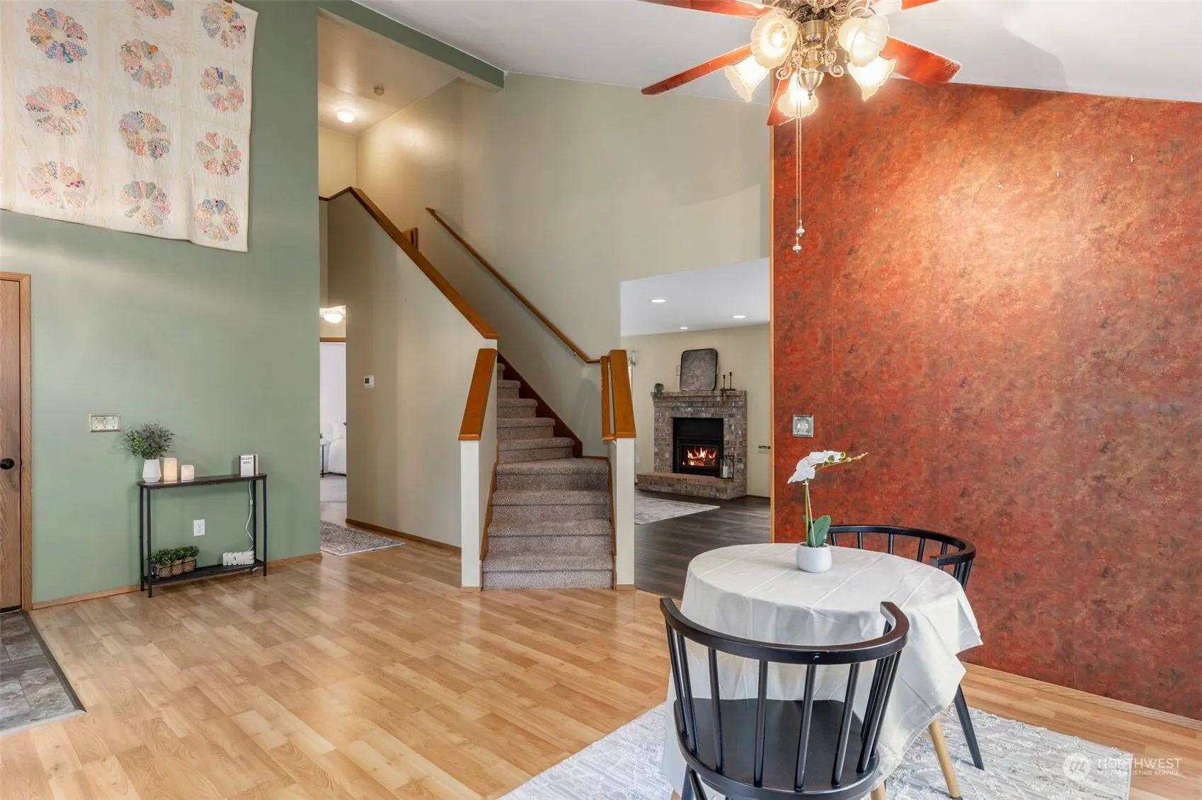 Welcome to this meticulously cared for 3 bedroom 2.5 bath home, that offers the perfect blend of comfort, convenience, and style. Enjoy the privacy of a main floor primary bedroom, featuring a 4 piece bath which includes a Kohler walk in tub & walk in closet. Upstairs offers the other 2 bedrooms & full bath. The kitchen is a generous size giving you plenty of space to entertain, which opens up to the family room and includes a cozy gas fireplace. Step outside to your backyard oasis, the expansive fenced backyard is perfect for enjoying summer nights, offering an automatic sunscreen to help on hot summer days to host backyard BBQ, or simply relaxing.