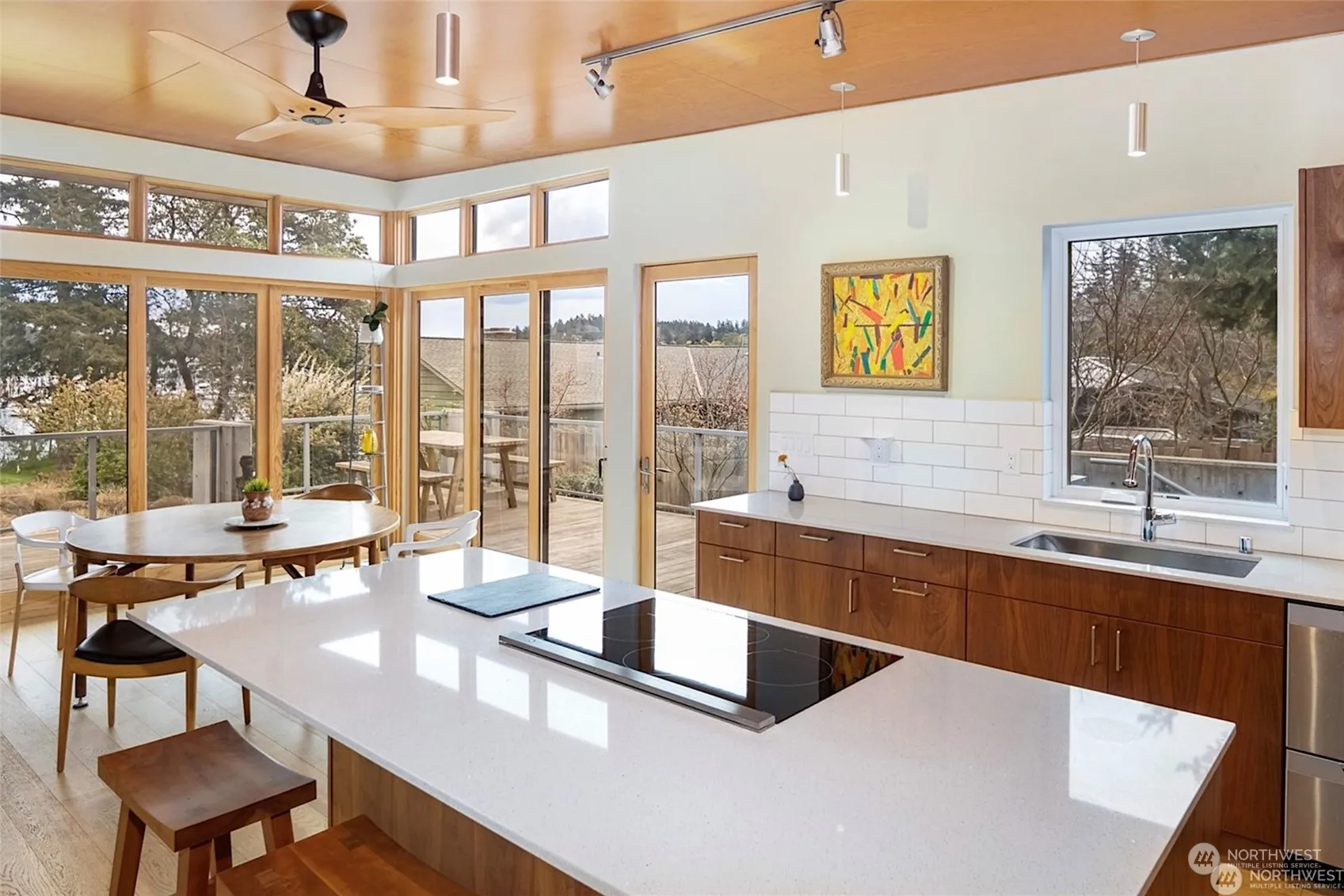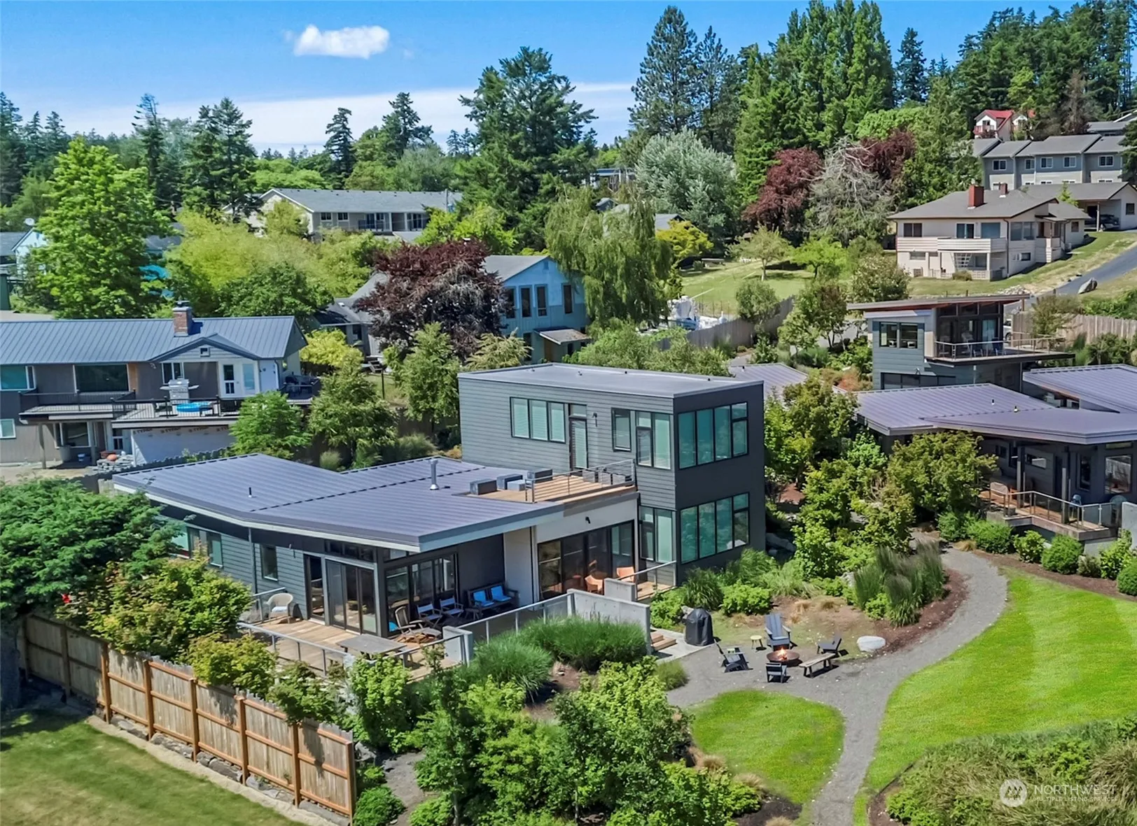Contemporary waterfront home incredibly situated along the shores of Friday Harbor. Architecturally-designed Fish Mackay Method Home; every room enjoying views and sunlight. Open gourmet kitchen with high-end appliances, induction stovetop, Liebherr refrigerator, drawer dishwasher, & quartz countertops. A large glass fireplace offers warmth and visual charm to both living and dining areas. Stunning views of the harbor and evening light from the marvelous rooftop deck. Beautifully landscaped with native plantings. Extensive decks and cozy fire pit, perfect for entertaining and providing peaceful, private spaces. Launch paddle-boards and kayaks from the shore; just steps away from all downtown Friday Harbor amenities.