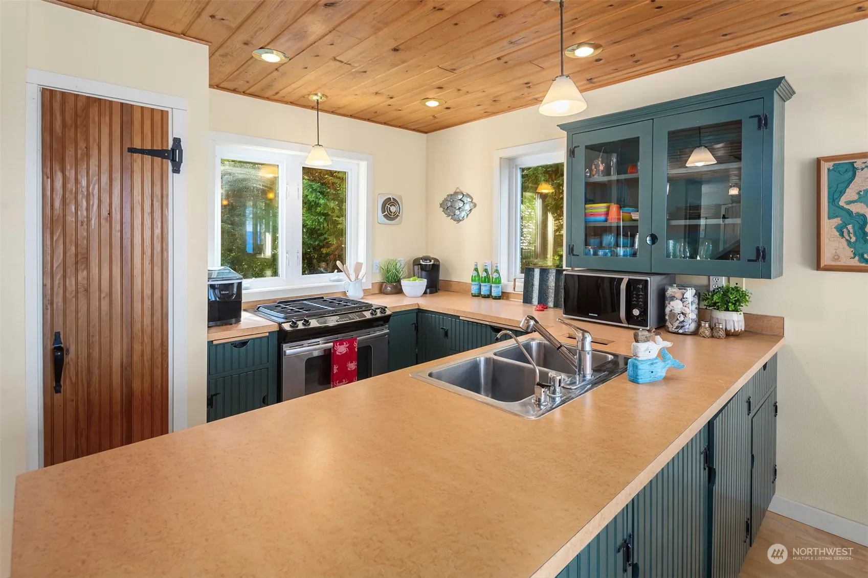 Indulge in the privacy of an island retreat! Saratoga Passage and Olympic Mountains, with whales and eagles alike, vie for your attention while the flat grassy yard beckons you to gather ripe apples + pears from the orchard. Inside, every space thoughtfully designed, maximizing the views while creating a relaxing setting. Charming kitchen opens to dining room with French Doors inviting you to the back deck + sunken firepit. Living room provides a cozy lounge with wood burning stove + abundant windows. Sleeping quarters upstairs, with two large bedrooms. Head down to your 83’ of beachfront to hunt for shells, bask in the sun, or simply read a book. With no ferry, a quick drive, and a gated entrance, your peaceful escape awaits!