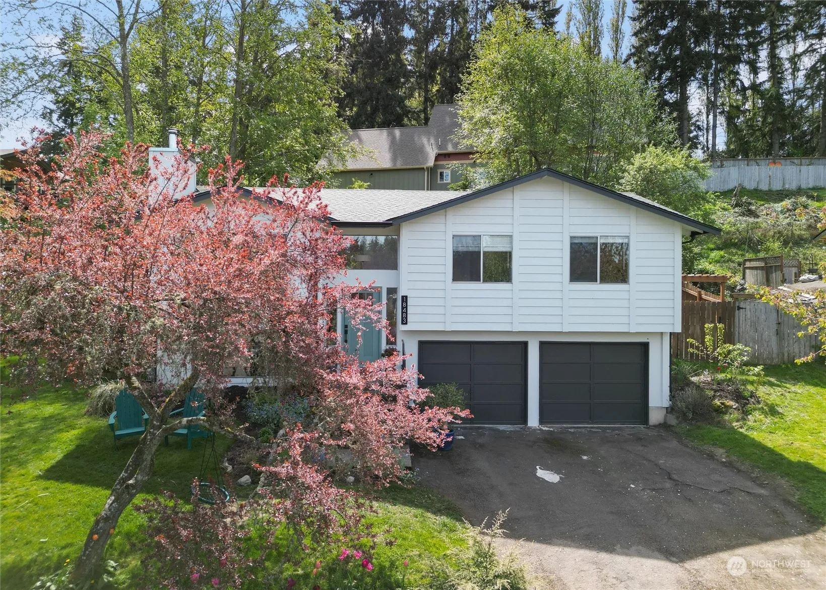 You’ll be wowed by the clean modern lines of this beautifully updated home. The home is located just minutes to downtown Poulsbo shopping and restaurants and to Hwy 305 making an easy commute to PSNS and Bangor. Situated on a large lot in an established neighborhood, the charming backyard is fenced with multiple garden spaces, and a patio for your outdoor entertaining. Step inside and up the stairs to a spacious living room open to the dining room and kitchen. Dreamy island kitchen looking out to the backyard, features custom backsplash, corian counters and plenty of storage. Spacious owner’s suite & 2 other beds on this level. Lower level features huge multi-use room with adjacent laundry and nicely updated bath. Turn key! See it today!