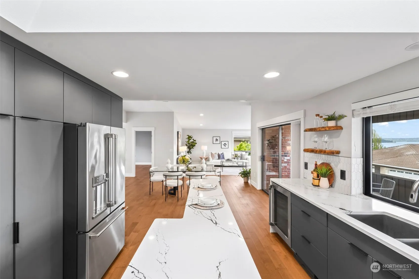 This 4 bd/2.75 bath 2750 SqFt gem provides serene, picturesque WATER VIEWS of Puget Sound and the Olympic Mountains year-round from the upper floor and the 40+ ft outdoor covered patio. Recent home renovations include a chef’s kitchen w/ Cambria© quartz countertops, custom cabinetry, and smart appliances. Luxurious primary bath spa-like retreat w/ a state-of-the-art Kohler digital shower system capable of 50+unique combinations from 10 water heads and a temperature-adjustable bidet w/ heated seat. This open-concept home has storage galore, an oversized 2 car garage, and 2 wood-burning fireplaces. Major upgrades include roof, heat pump, and h20 heater. Nearby to JBLM and I-5!